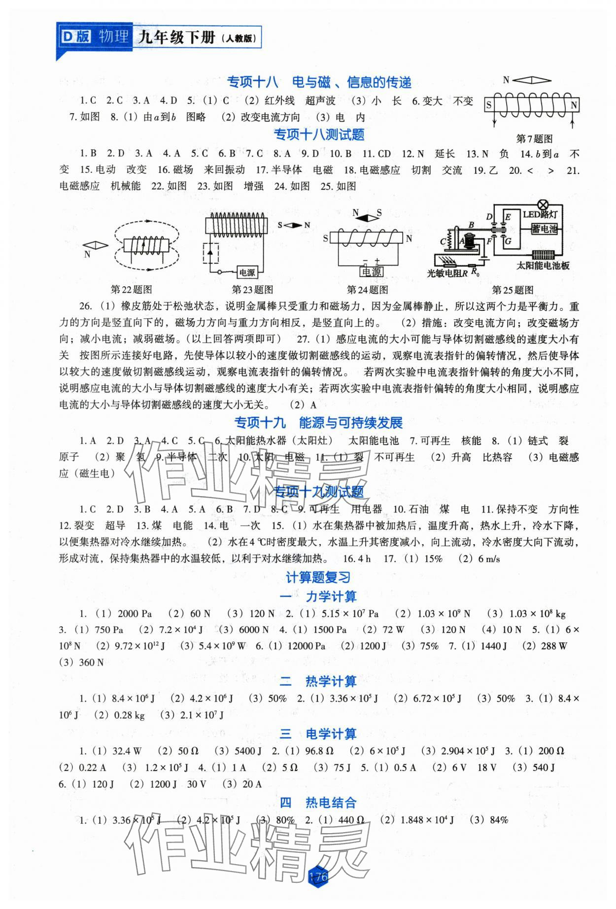注:目前有些书本章节名称可能整理的还不是很完善,但都是按照顺序排列的,请同学们按照顺序仔细查找。练习册 2024年新课程能力培养九年级物理下册人教版D版 答案主要是用来给同学们做完题方便对答案用的,请勿直接抄袭。