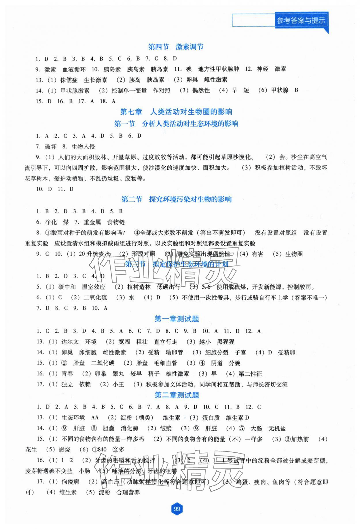 注:目前有些书本章节名称可能整理的还不是很完善,但都是按照顺序排列的,请同学们按照顺序仔细查找。练习册 2024年新课程能力培养七年级生物下册人教版D版 答案主要是用来给同学们做完题方便对答案用的,请勿直接抄袭。