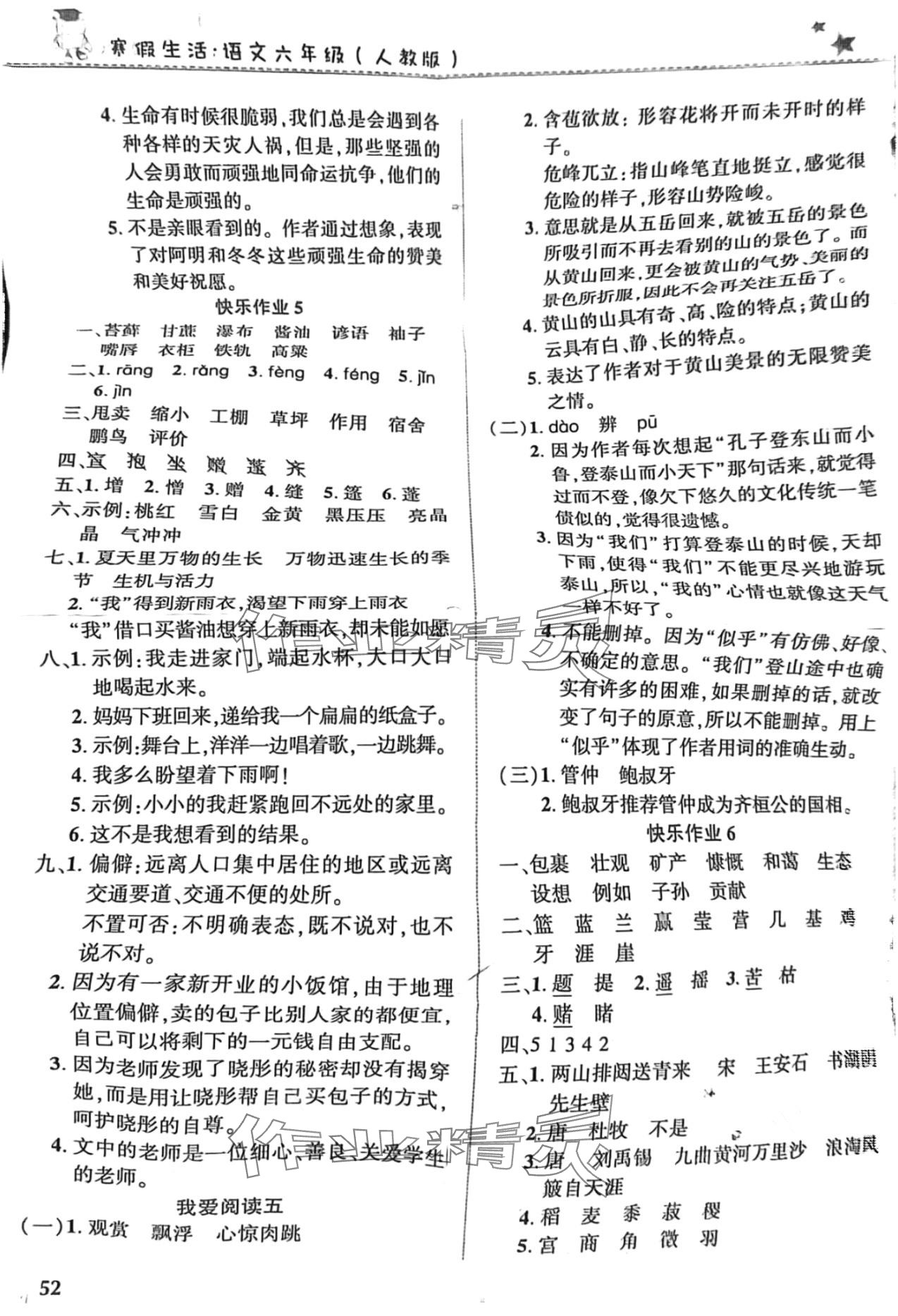 《2024年寒假生活河南教育电子音像出版社六年级语文人教版》