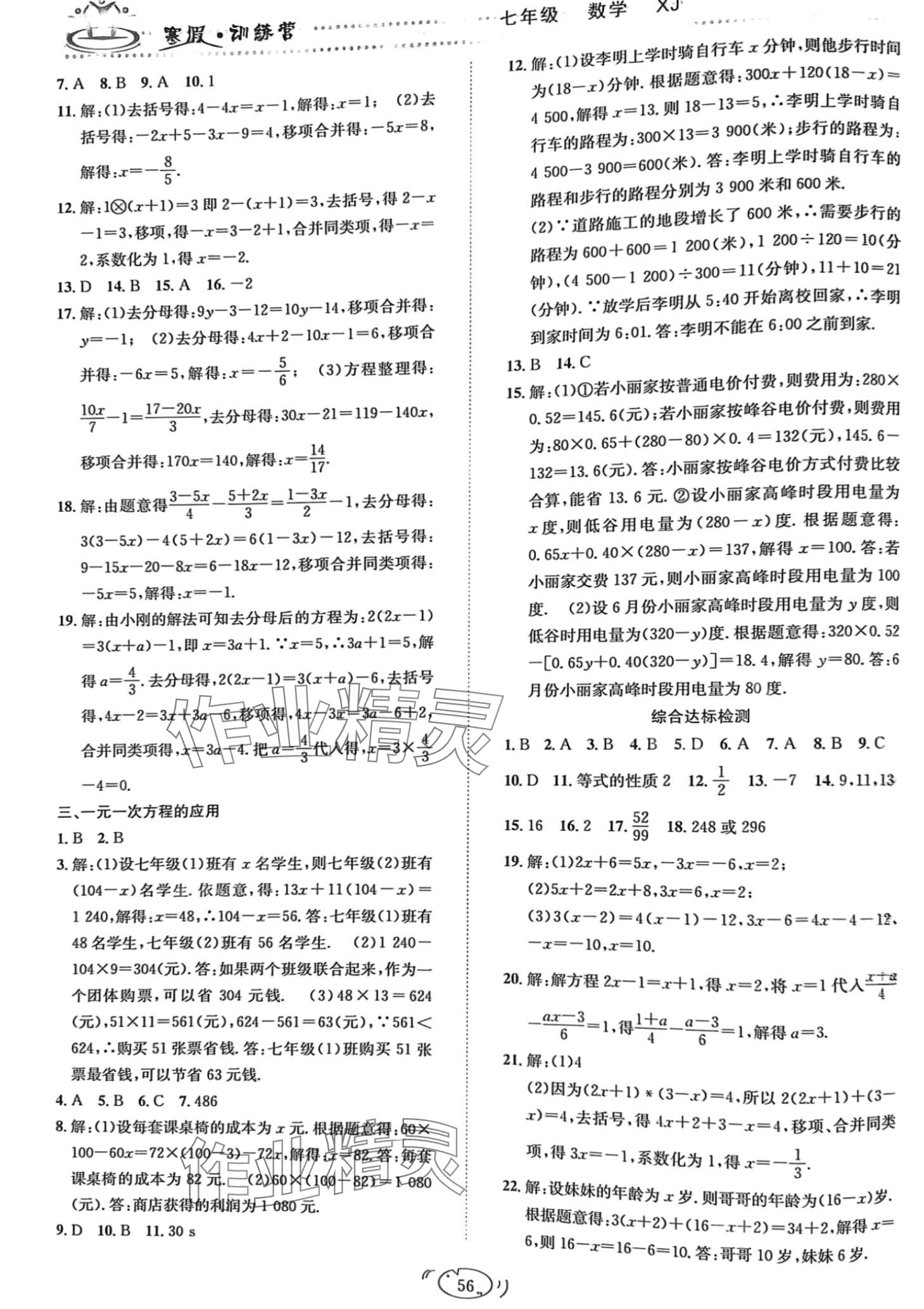 注:目前有些书本章节名称可能整理的还不是很完善,但都是按照顺序排列的,请同学们按照顺序仔细查找。练习册 2024年寒假训练营合肥工业大学出版社七年级数学湘教版 答案主要是用来给同学们做完题方便对答案用的,请勿直接抄袭。