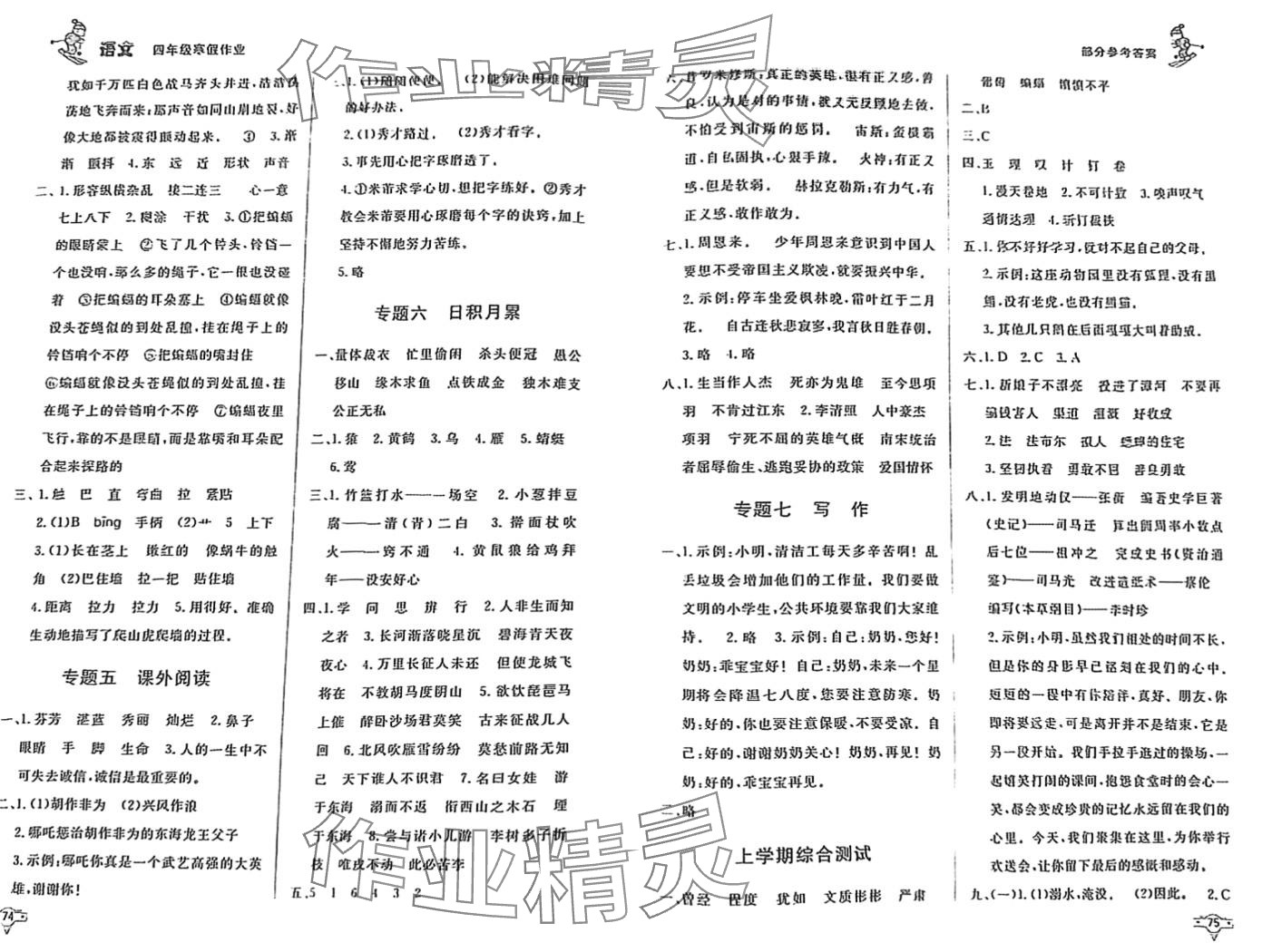 注:目前有些书本章节名称可能整理的还不是很完善,但都是按照顺序排列的,请同学们按照顺序仔细查找。练习册 2024年寒假作业知识出版社四年级语文 答案主要是用来给同学们做完题方便对答案用的,请勿直接抄袭。