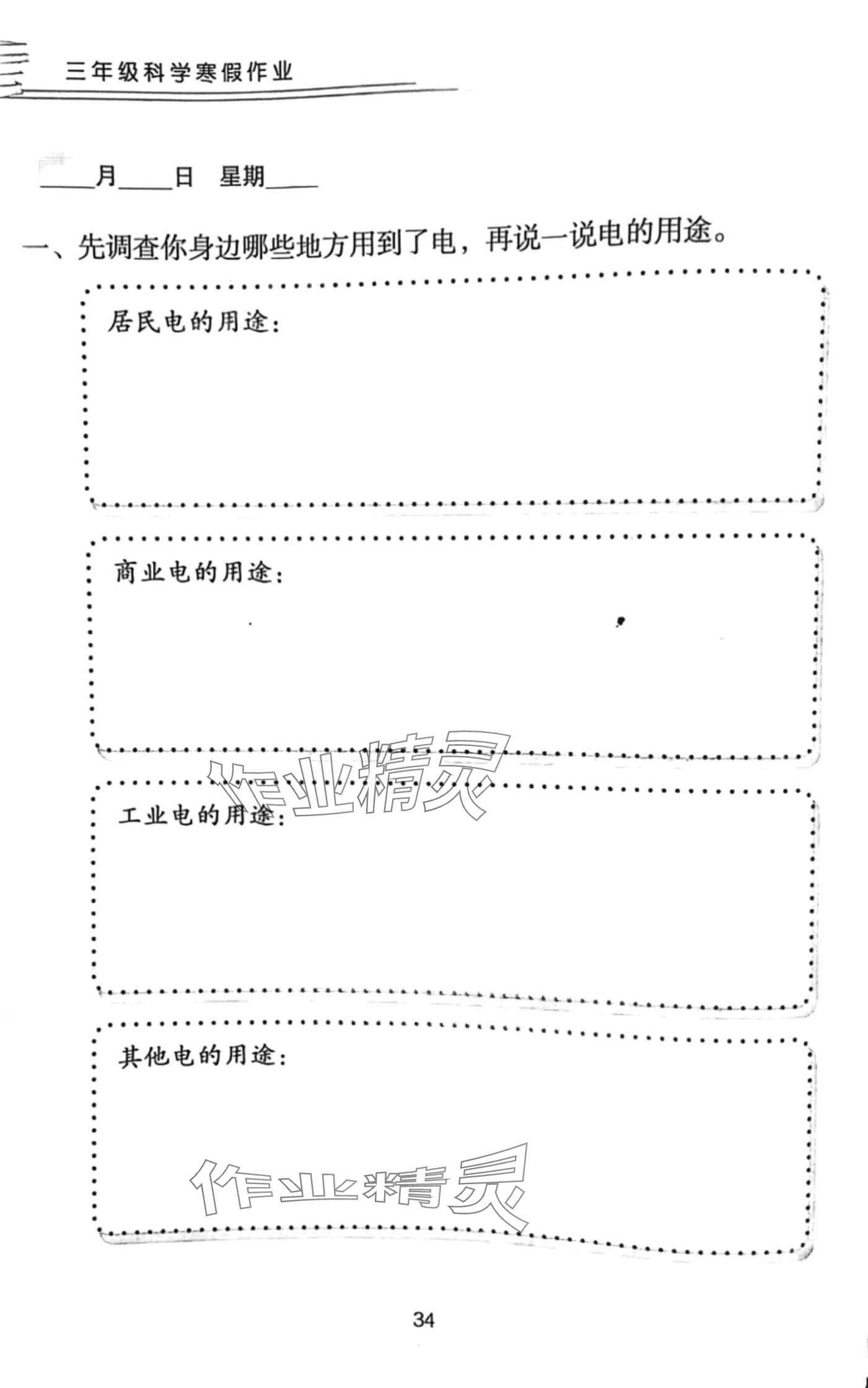 2024年寒假作业长江少年儿童出版社三年级科学人教版