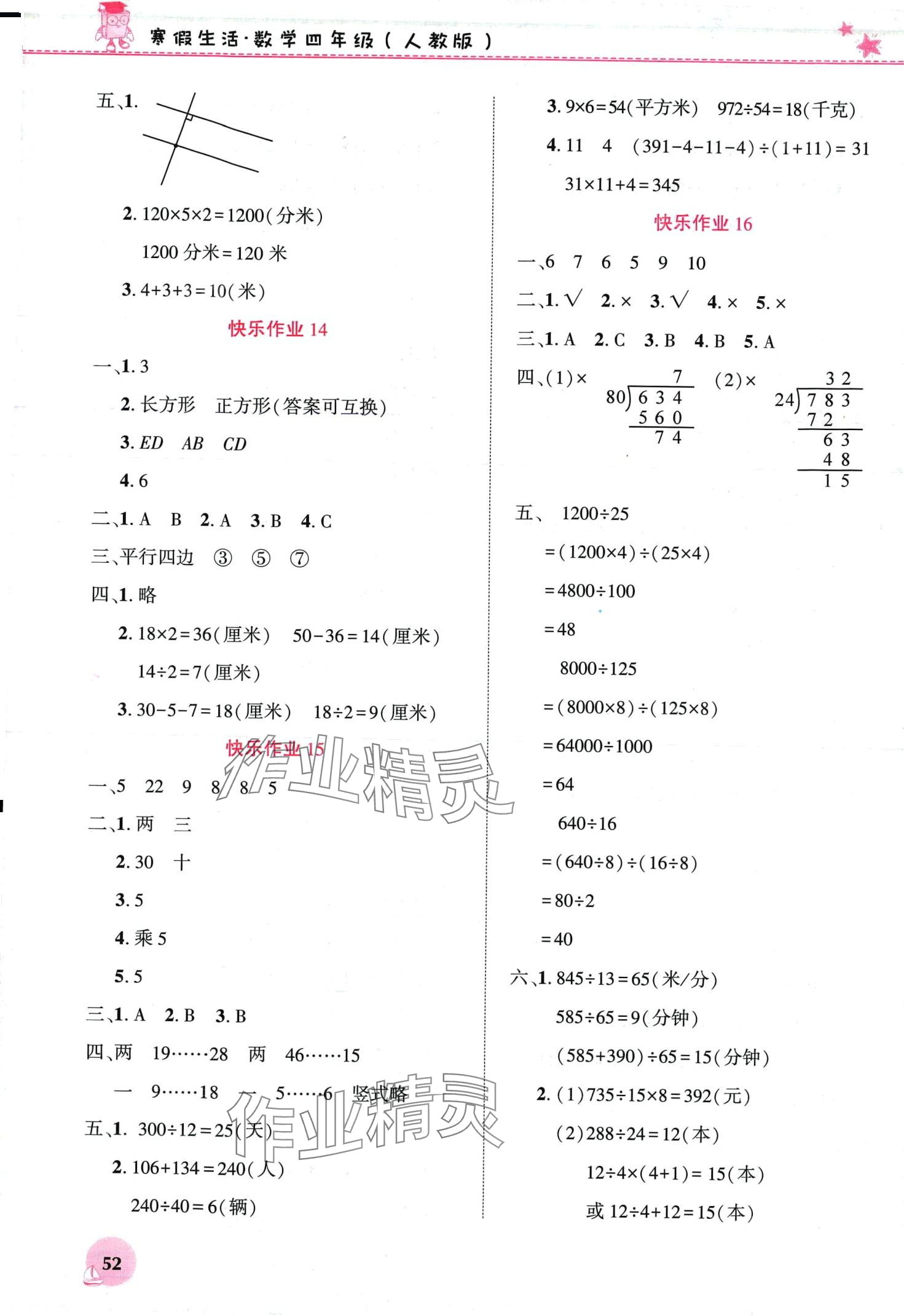 《2024年寒假生活河南教育电子音像出版社四年级数学人教版》