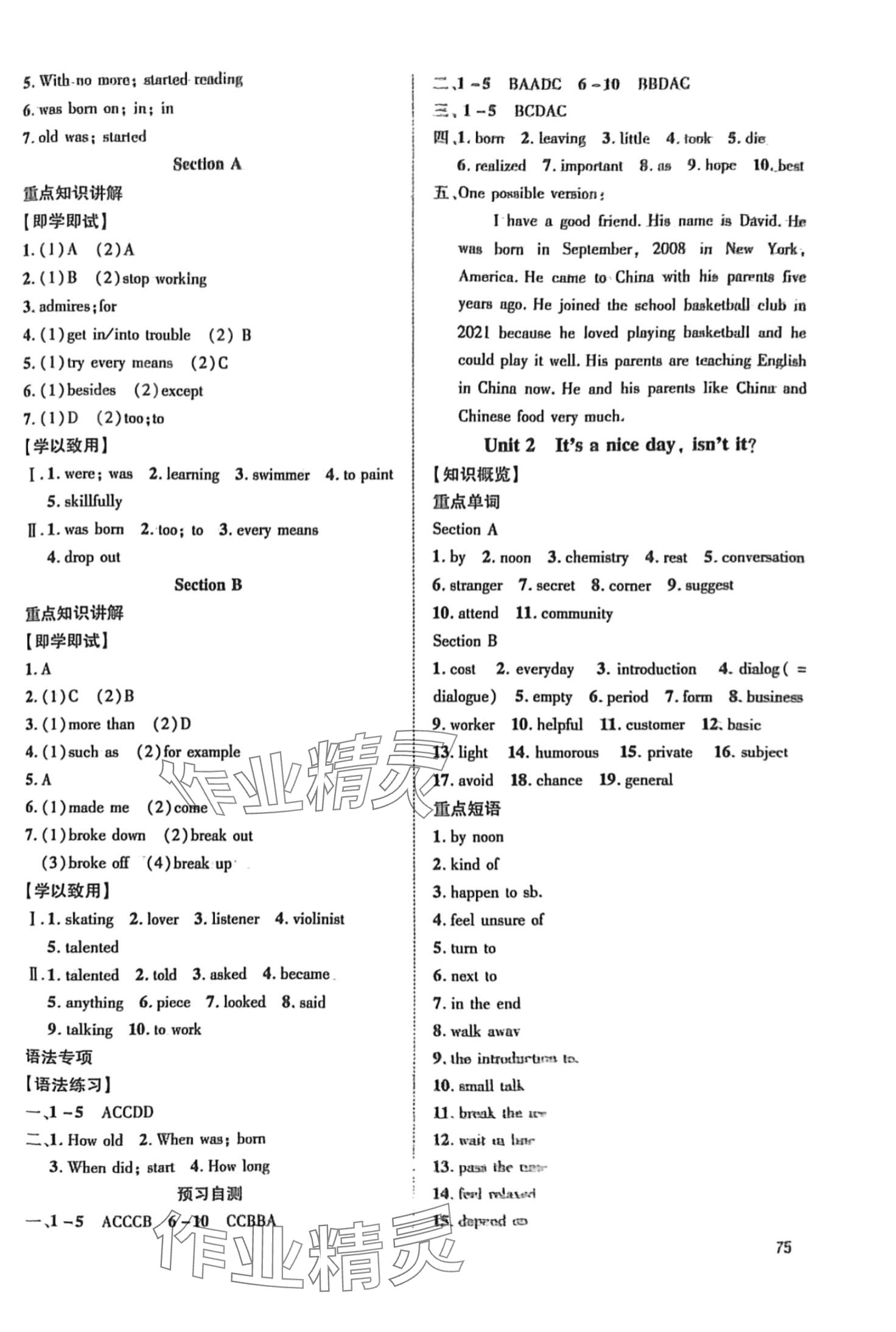 注:目前有些书本章节名称可能整理的还不是很完善,但都是按照顺序排列的,请同学们按照顺序仔细查找。练习册 2024年鲁人泰斗快乐寒假假期好时光武汉大学出版社八年级英语 答案主要是用来给同学们做完题方便对答案用的,请勿直接抄袭。
