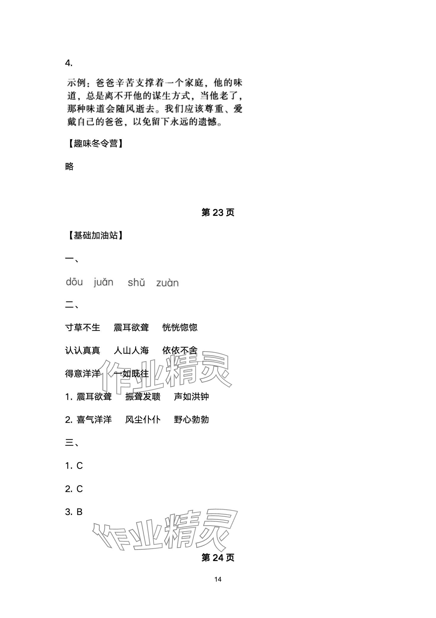 注:目前有些书本章节名称可能整理的还不是很完善,但都是按照顺序排列的,请同学们按照顺序仔细查找。练习册 2024年寒假闯关大本营五年级语文人教版 答案主要是用来给同学们做完题方便对答案用的,请勿直接抄袭。