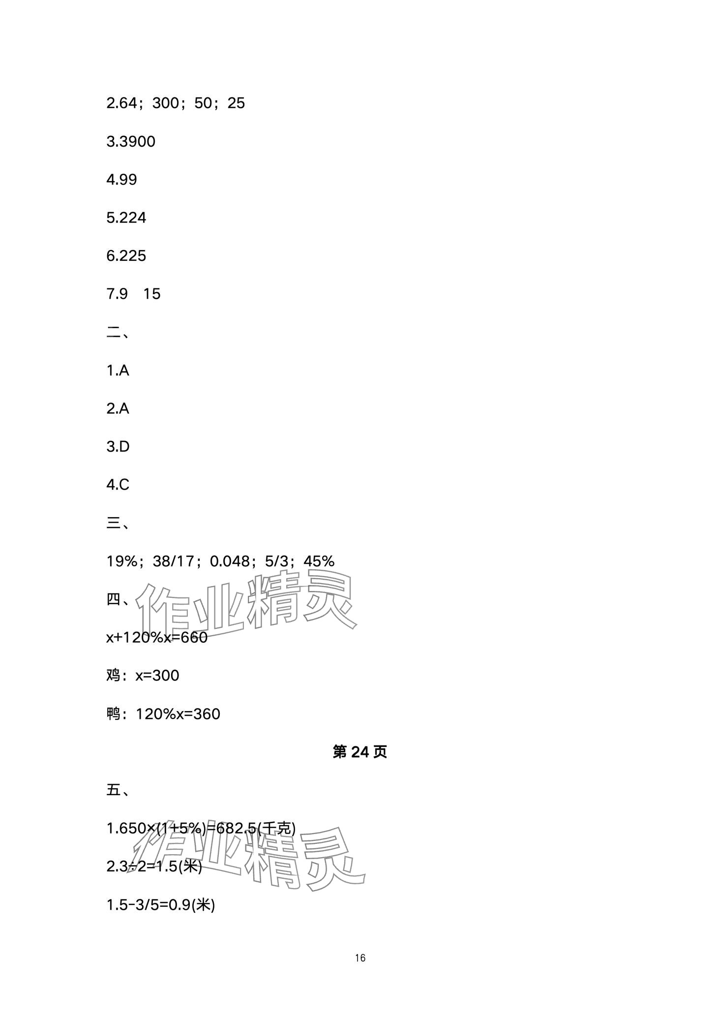 注:目前有些书本章节名称可能整理的还不是很完善,但都是按照顺序排列的,请同学们按照顺序仔细查找。练习册 2024年寒假闯关大本营六年级数学苏教版 答案主要是用来给同学们做完题方便对答案用的,请勿直接抄袭。