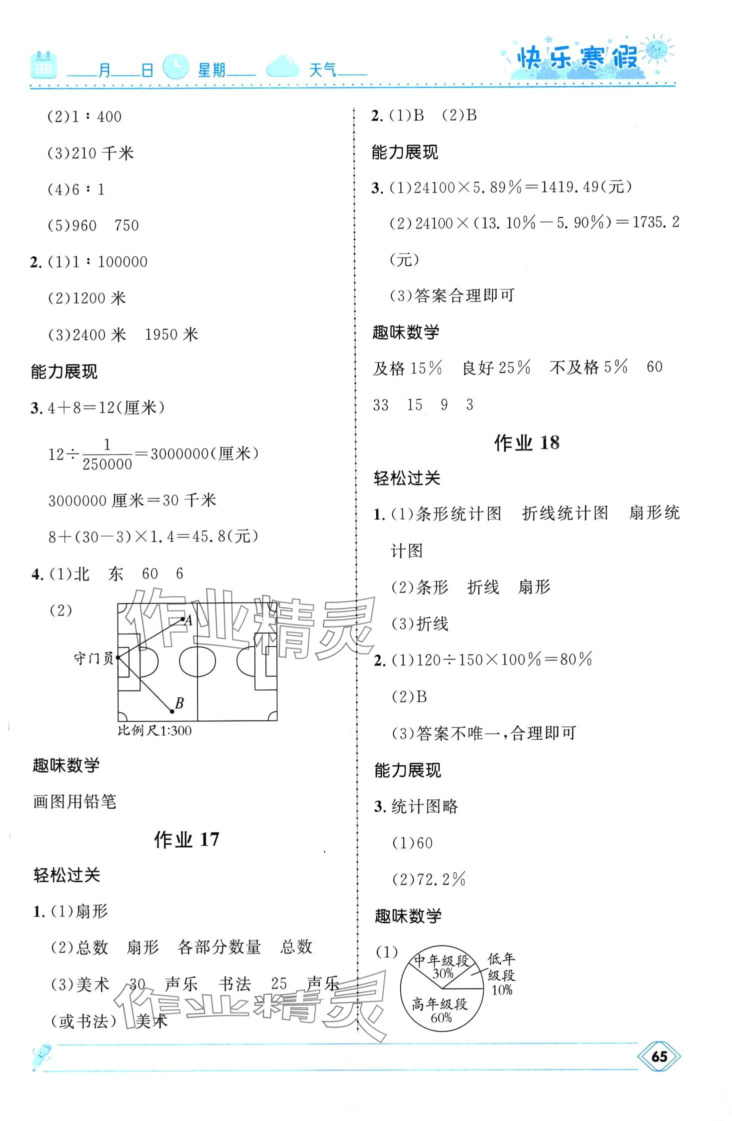 注:目前有些书本章节名称可能整理的还不是很完善,但都是按照顺序排列的,请同学们按照顺序仔细查找。练习册 2024年赢在起跑线快乐寒假河北少年儿童出版社六年级数学冀教版 答案主要是用来给同学们做完题方便对答案用的,请勿直接抄袭。