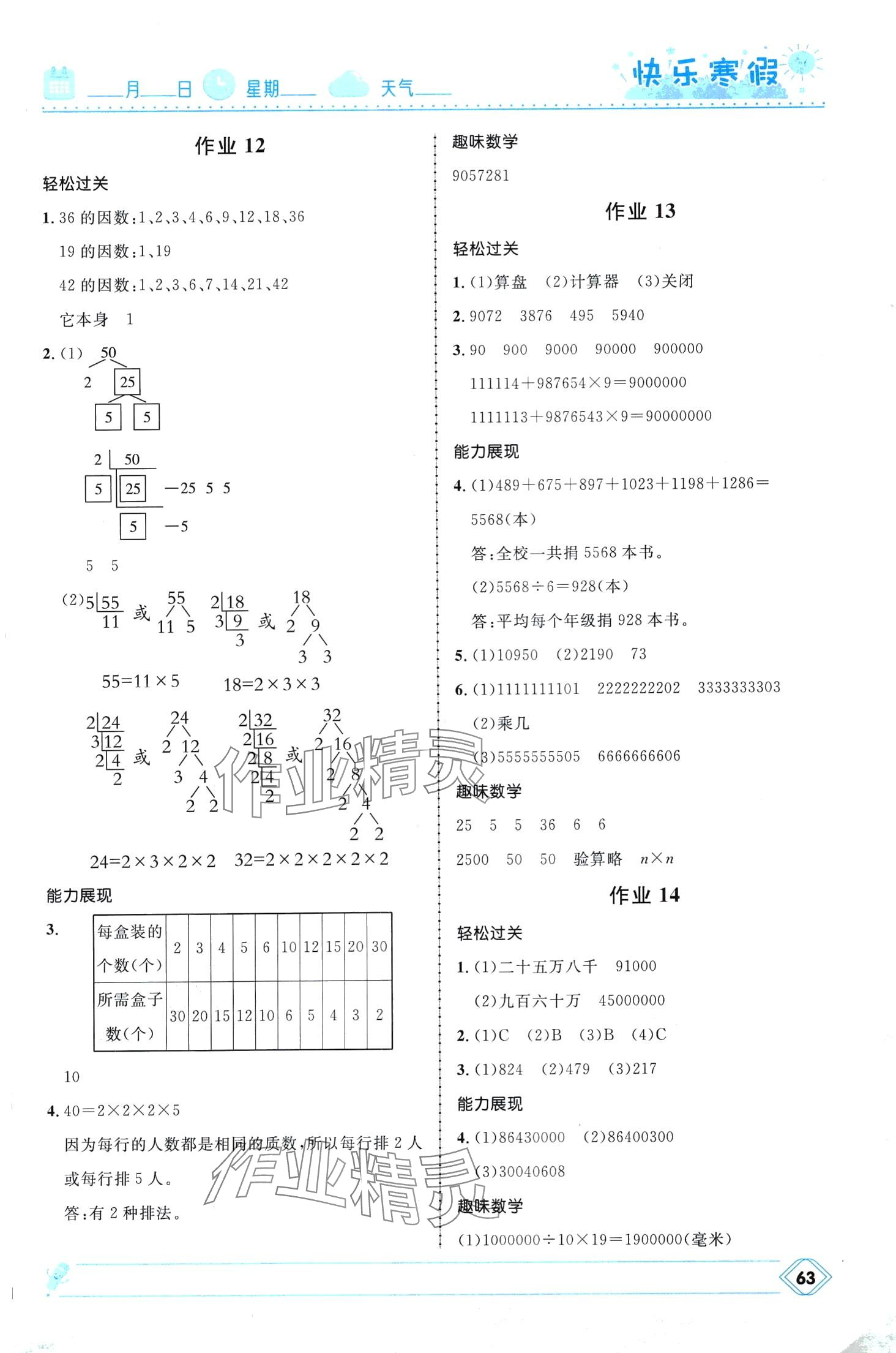 2024年赢在起跑线快乐寒假河北少年儿童出版社四年级数学冀教版