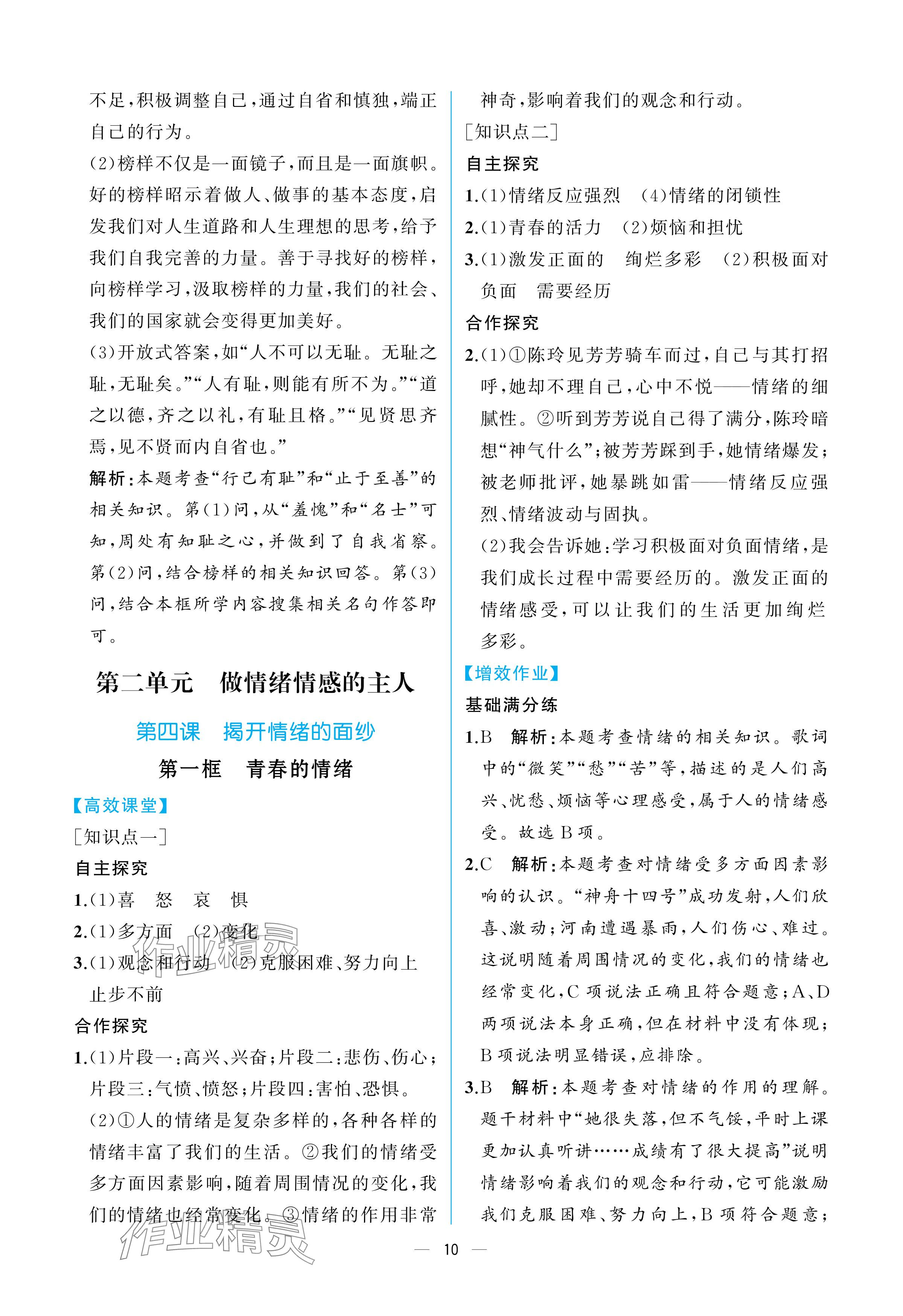 注:目前有些书本章节名称可能整理的还不是很完善,但都是按照顺序排列的,请同学们按照顺序仔细查找。练习册 2024年人教金学典同步解析与测评七年级道德与法治下册人教版重庆专版 答案主要是用来给同学们做完题方便对答案用的,请勿直接抄袭。