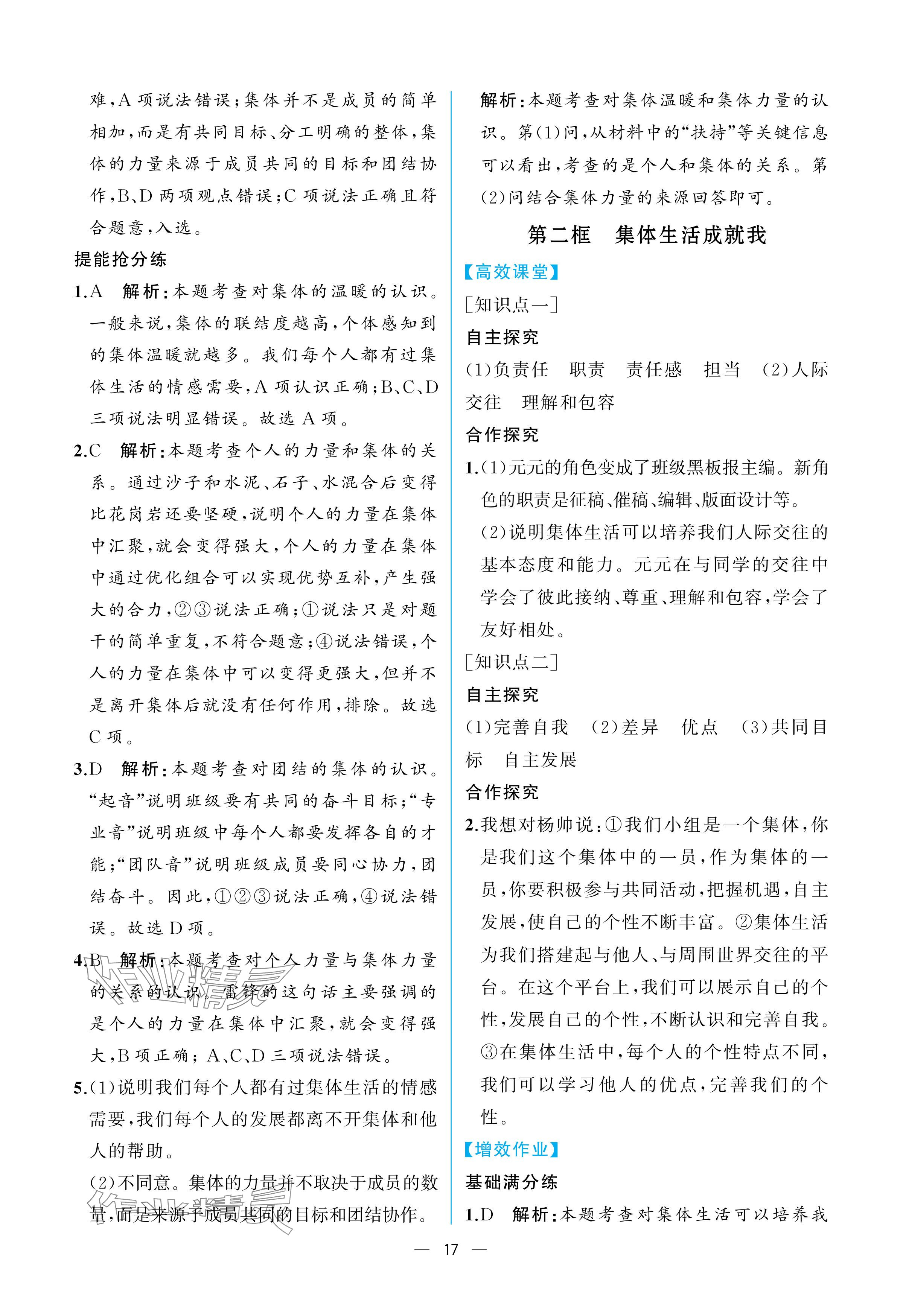 2024年人教金学典同步解析与测评七年级道德与法治下册人教版重庆专版