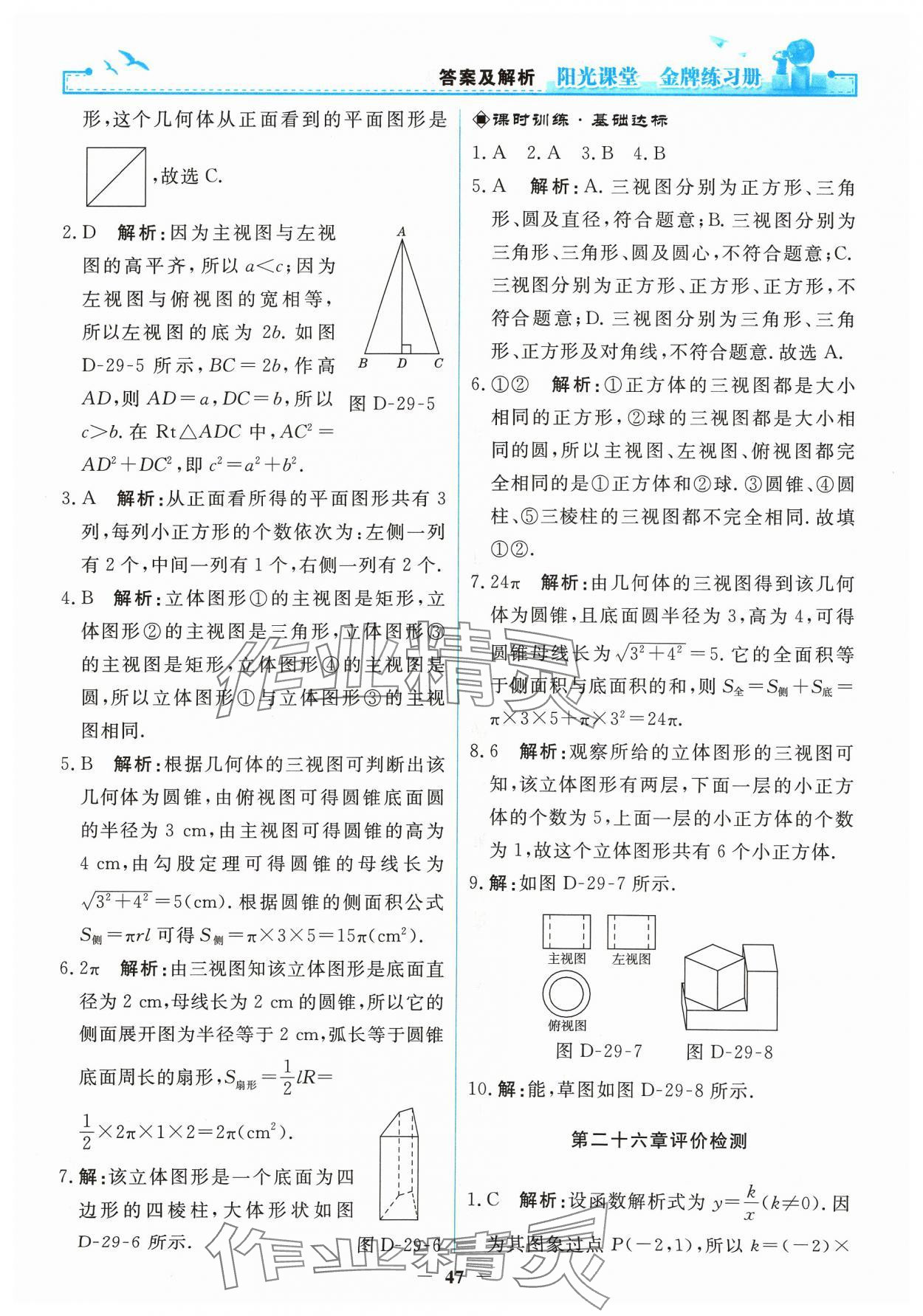 注:目前有些书本章节名称可能整理的还不是很完善,但都是按照顺序排列的,请同学们按照顺序仔细查找。练习册 2024年阳光课堂金牌练习册九年级数学下册人教版 答案主要是用来给同学们做完题方便对答案用的,请勿直接抄袭。