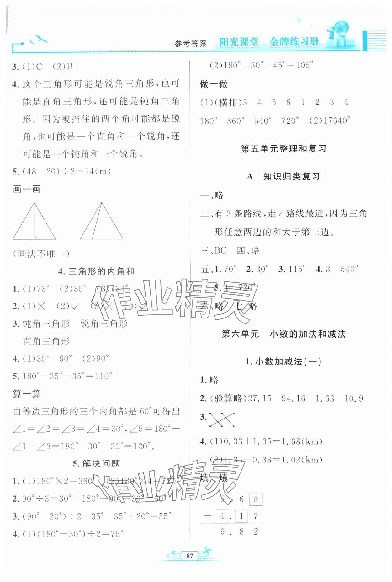 注:目前有些书本章节名称可能整理的还不是很完善,但都是按照顺序排列的,请同学们按照顺序仔细查找。练习册 2024年阳光课堂金牌练习册四年级数学下册人教版 答案主要是用来给同学们做完题方便对答案用的,请勿直接抄袭。