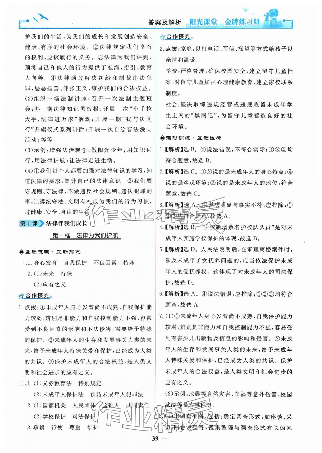 2024年阳光课堂金牌练习册七年级道德与法治下册人教版