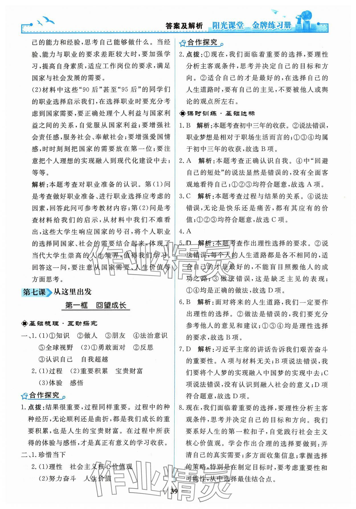 注:目前有些书本章节名称可能整理的还不是很完善,但都是按照顺序排列的,请同学们按照顺序仔细查找。练习册 2024年阳光课堂金牌练习册九年级道德与法治下册人教版 答案主要是用来给同学们做完题方便对答案用的,请勿直接抄袭。