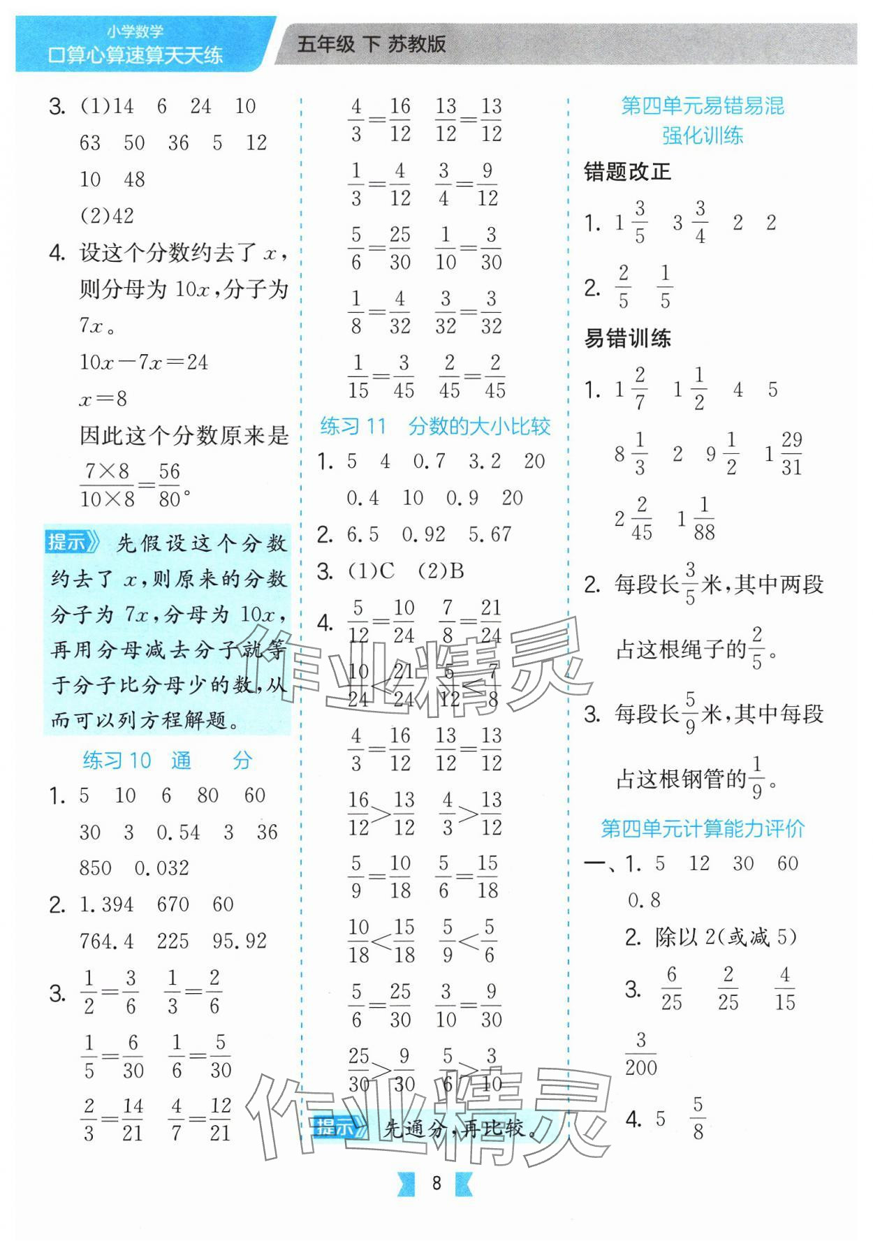 注:目前有些书本章节名称可能整理的还不是很完善,但都是按照顺序排列的,请同学们按照顺序仔细查找。练习册 2024年口算心算速算天天练江苏人民出版社五年级数学下册苏教版 答案主要是用来给同学们做完题方便对答案用的,请勿直接抄袭。
