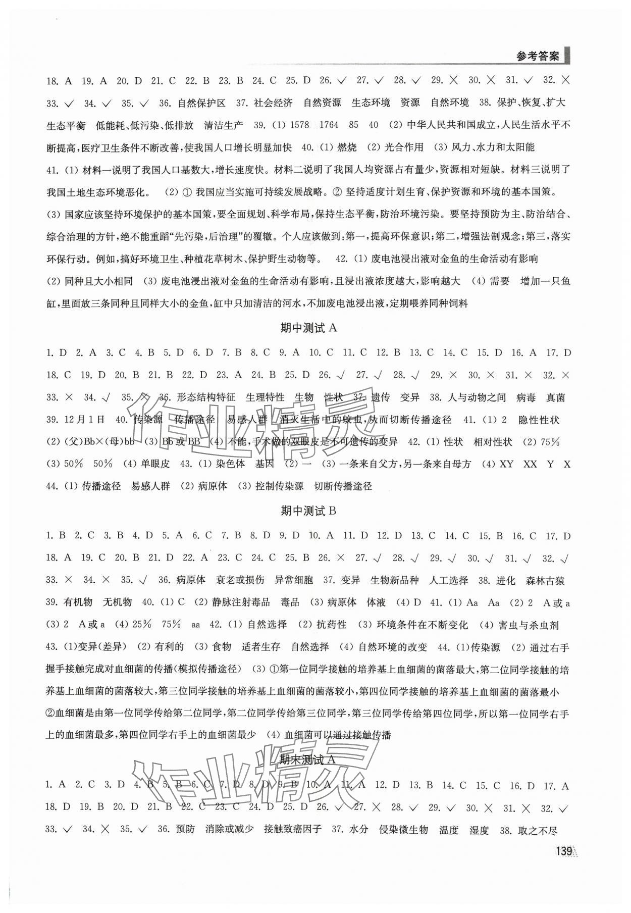 注:目前有些书本章节名称可能整理的还不是很完善,但都是按照顺序排列的,请同学们按照顺序仔细查找。练习册 2024年创新课时作业八年级生物下册苏科版 答案主要是用来给同学们做完题方便对答案用的,请勿直接抄袭。