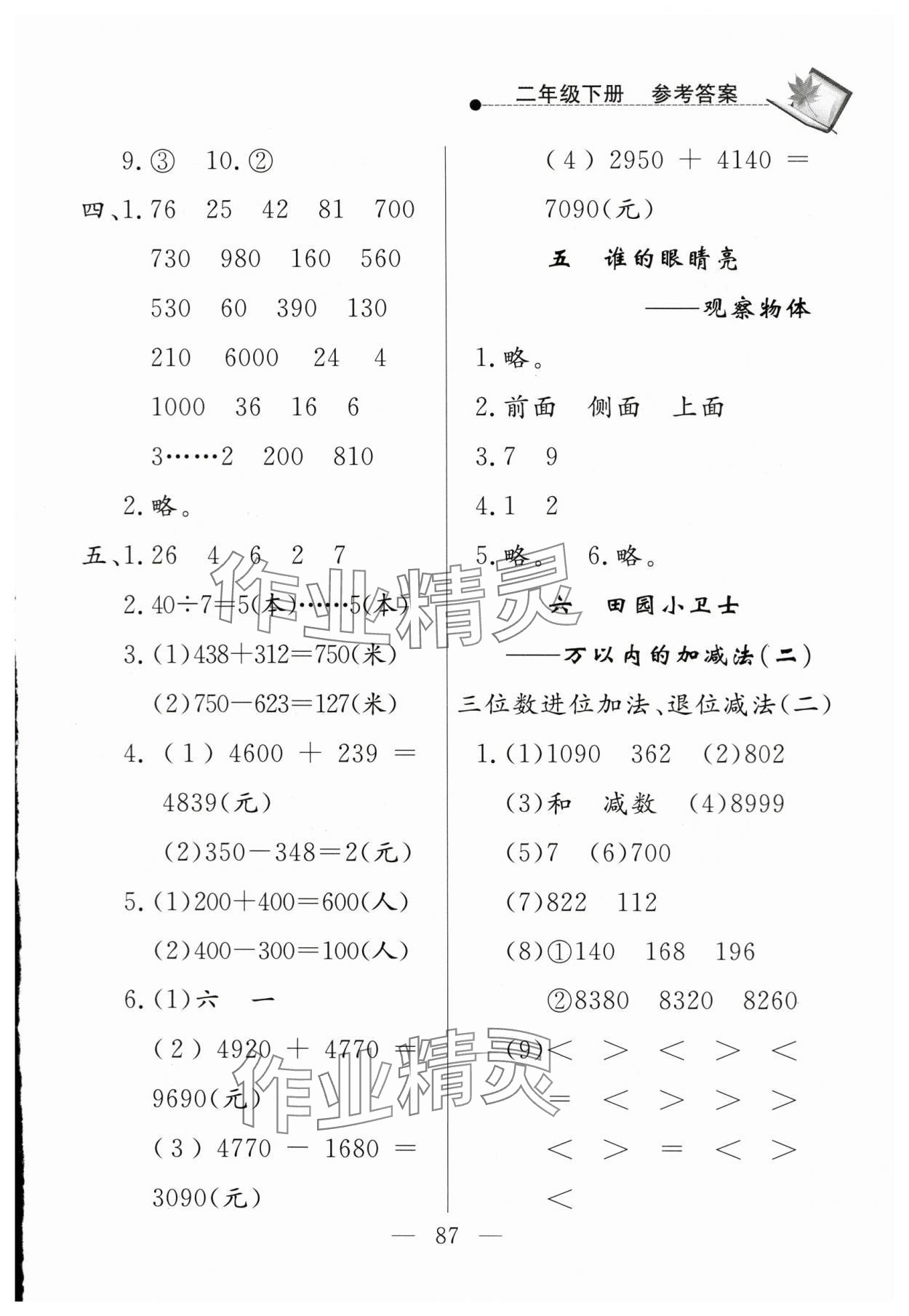 注:目前有些书本章节名称可能整理的还不是很完善,但都是按照顺序排列的,请同学们按照顺序仔细查找。练习册 2024年同步练习册山东科学技术出版社二年级数学下册青岛版 答案主要是用来给同学们做完题方便对答案用的,请勿直接抄袭。