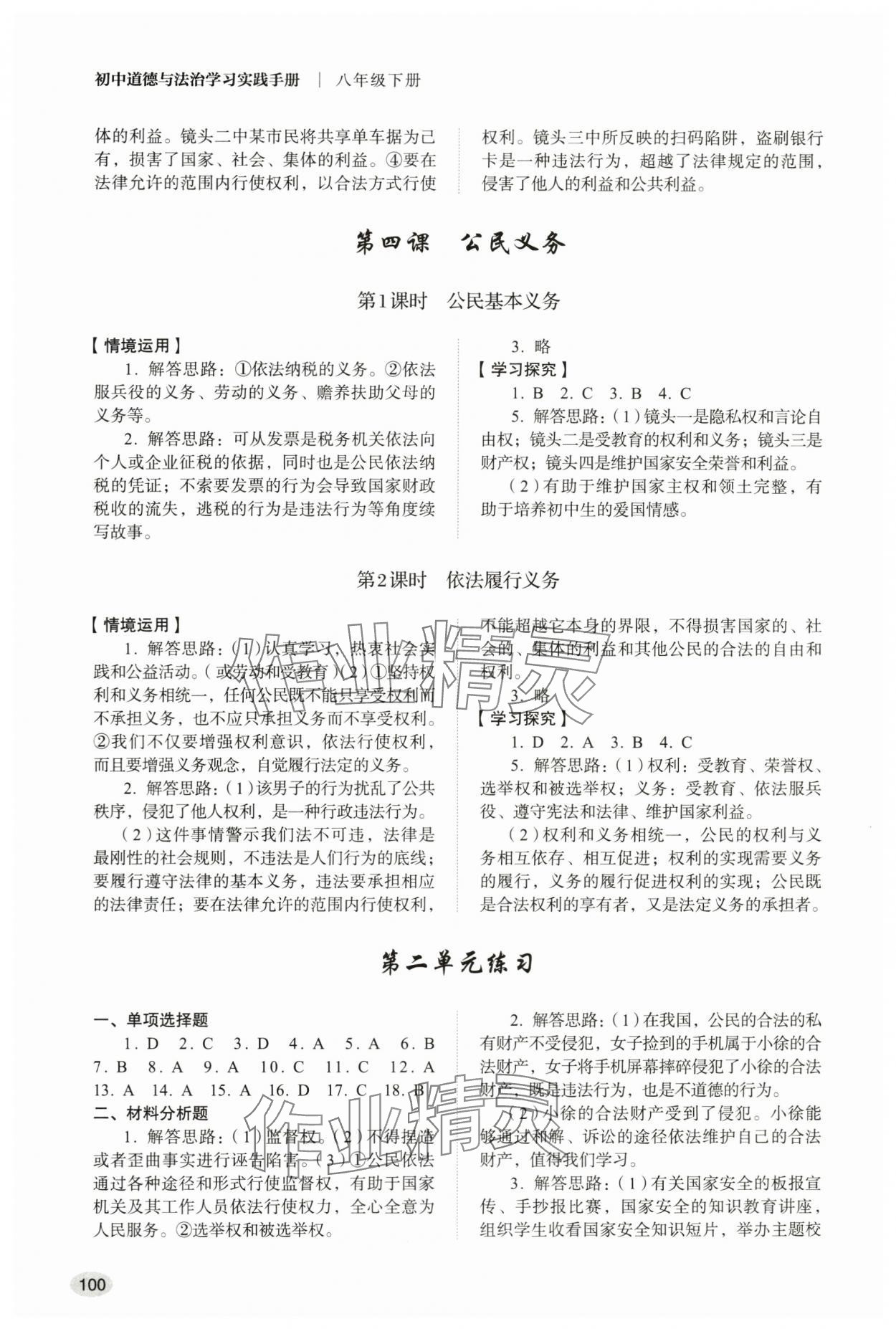 2024年学习实践手册八年级道德与法治下册人教版山东人民出版社