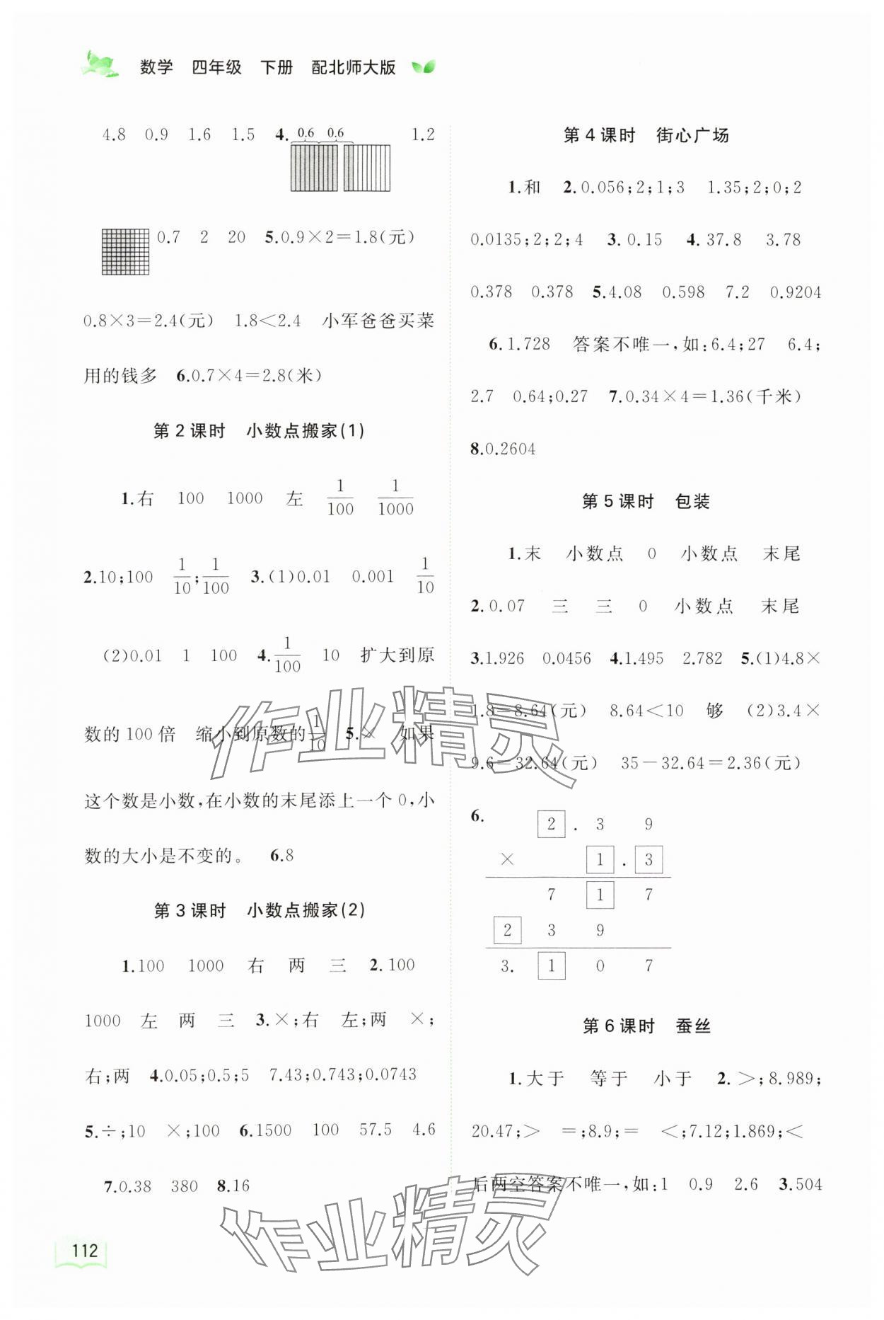 注:目前有些书本章节名称可能整理的还不是很完善,但都是按照顺序排列的,请同学们按照顺序仔细查找。练习册 2024年新课程学习与测评同步学习四年级数学下册北师大版 答案主要是用来给同学们做完题方便对答案用的,请勿直接抄袭。