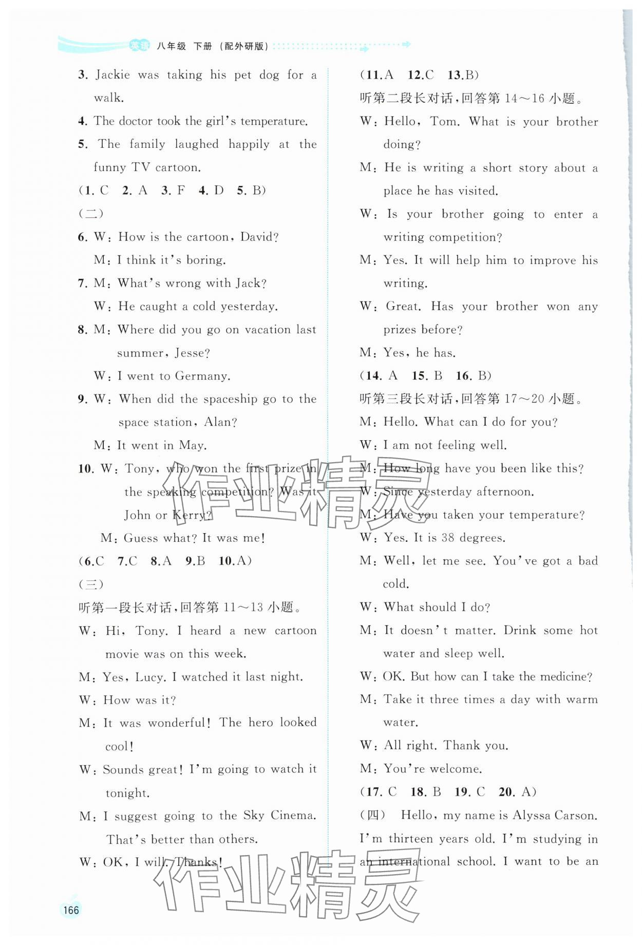 注:目前有些书本章节名称可能整理的还不是很完善,但都是按照顺序排列的,请同学们按照顺序仔细查找。练习册 2024年新课程学习与测评同步学习八年级英语下册外研版 答案主要是用来给同学们做完题方便对答案用的,请勿直接抄袭。