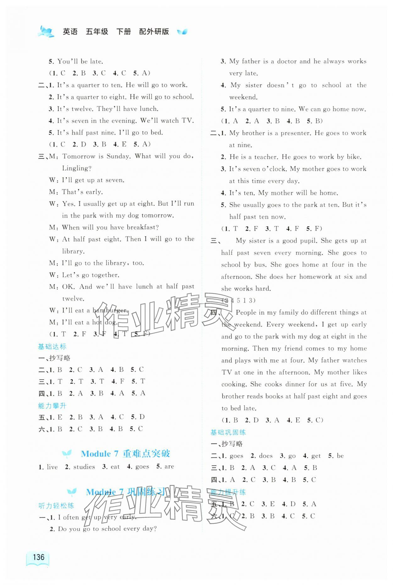 注:目前有些书本章节名称可能整理的还不是很完善,但都是按照顺序排列的,请同学们按照顺序仔细查找。练习册 2024年新课程学习与测评同步学习五年级英语下册外研版 答案主要是用来给同学们做完题方便对答案用的,请勿直接抄袭。