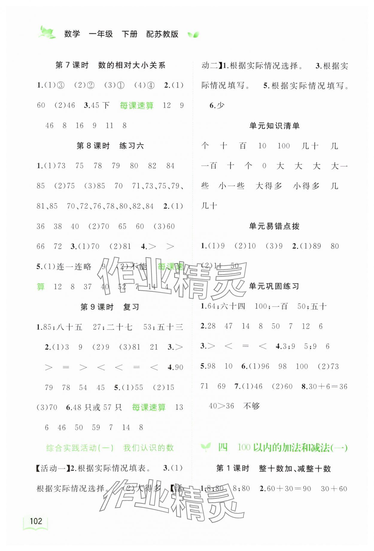 注:目前有些书本章节名称可能整理的还不是很完善,但都是按照顺序排列的,请同学们按照顺序仔细查找。练习册 2024年新课程学习与测评同步学习一年级数学下册苏教版 答案主要是用来给同学们做完题方便对答案用的,请勿直接抄袭。