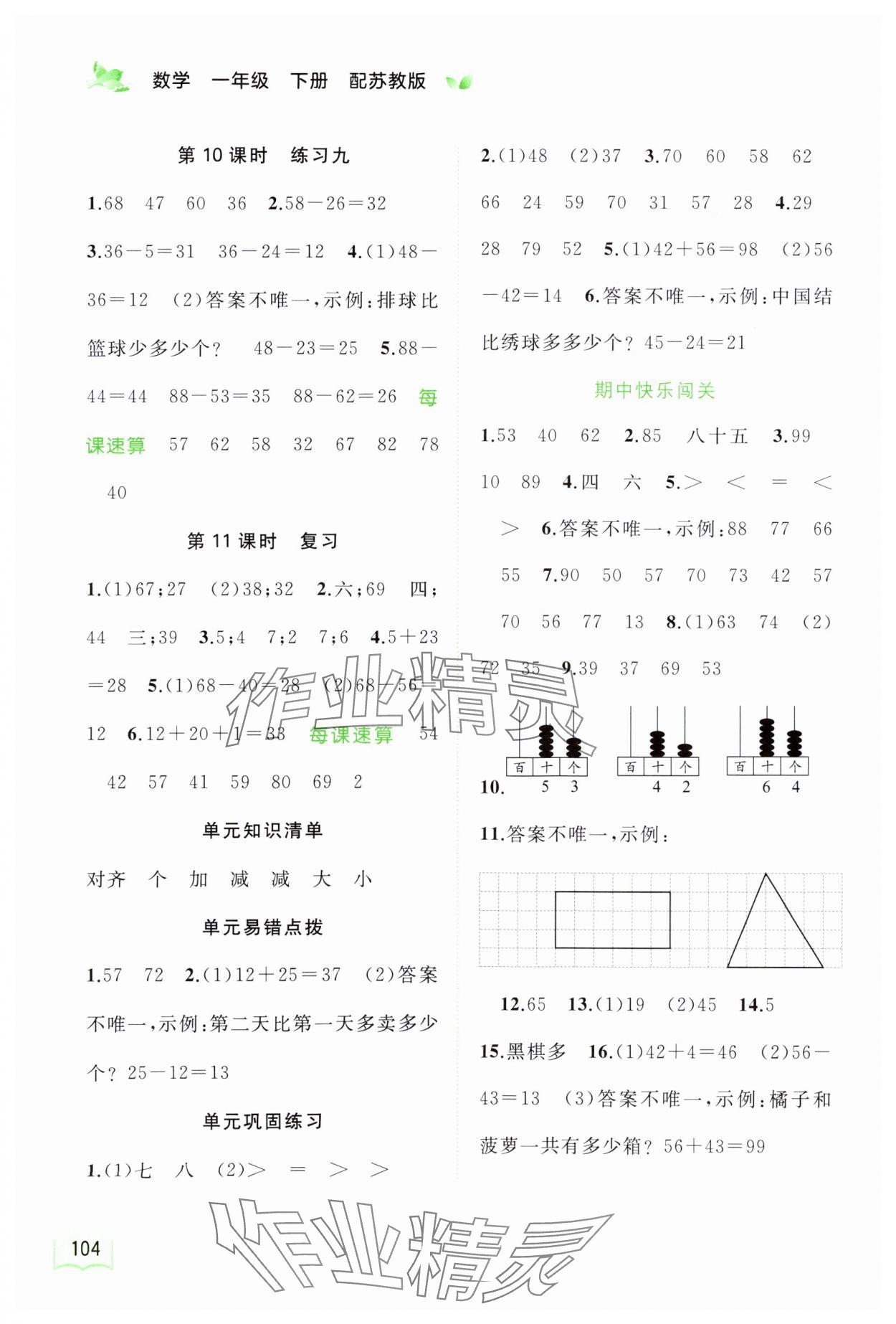 注:目前有些书本章节名称可能整理的还不是很完善,但都是按照顺序排列的,请同学们按照顺序仔细查找。练习册 2024年新课程学习与测评同步学习一年级数学下册苏教版 答案主要是用来给同学们做完题方便对答案用的,请勿直接抄袭。