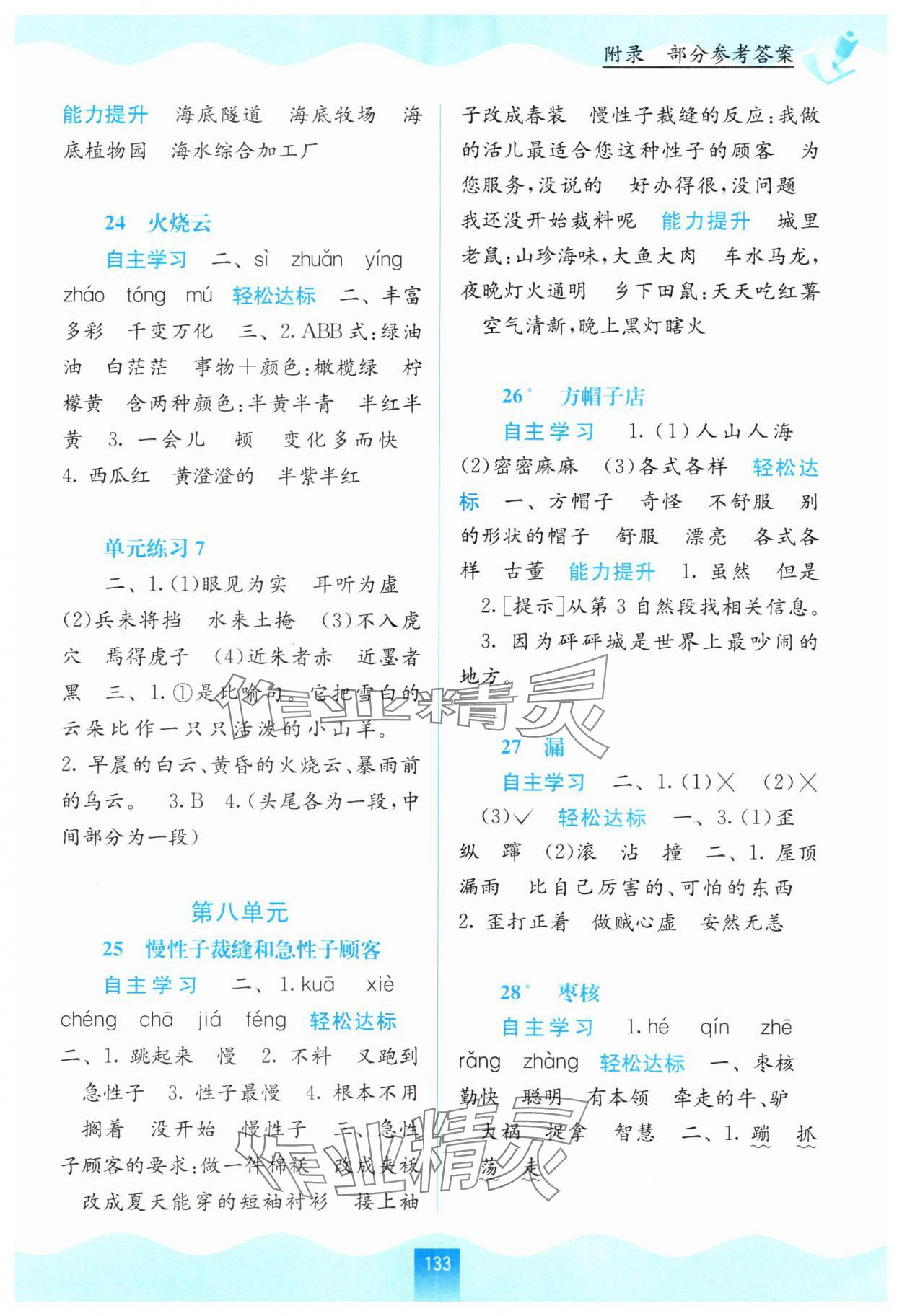 注:目前有些书本章节名称可能整理的还不是很完善,但都是按照顺序排列的,请同学们按照顺序仔细查找。练习册 2024年自主学习能力测评三年级语文下册人教版 答案主要是用来给同学们做完题方便对答案用的,请勿直接抄袭。