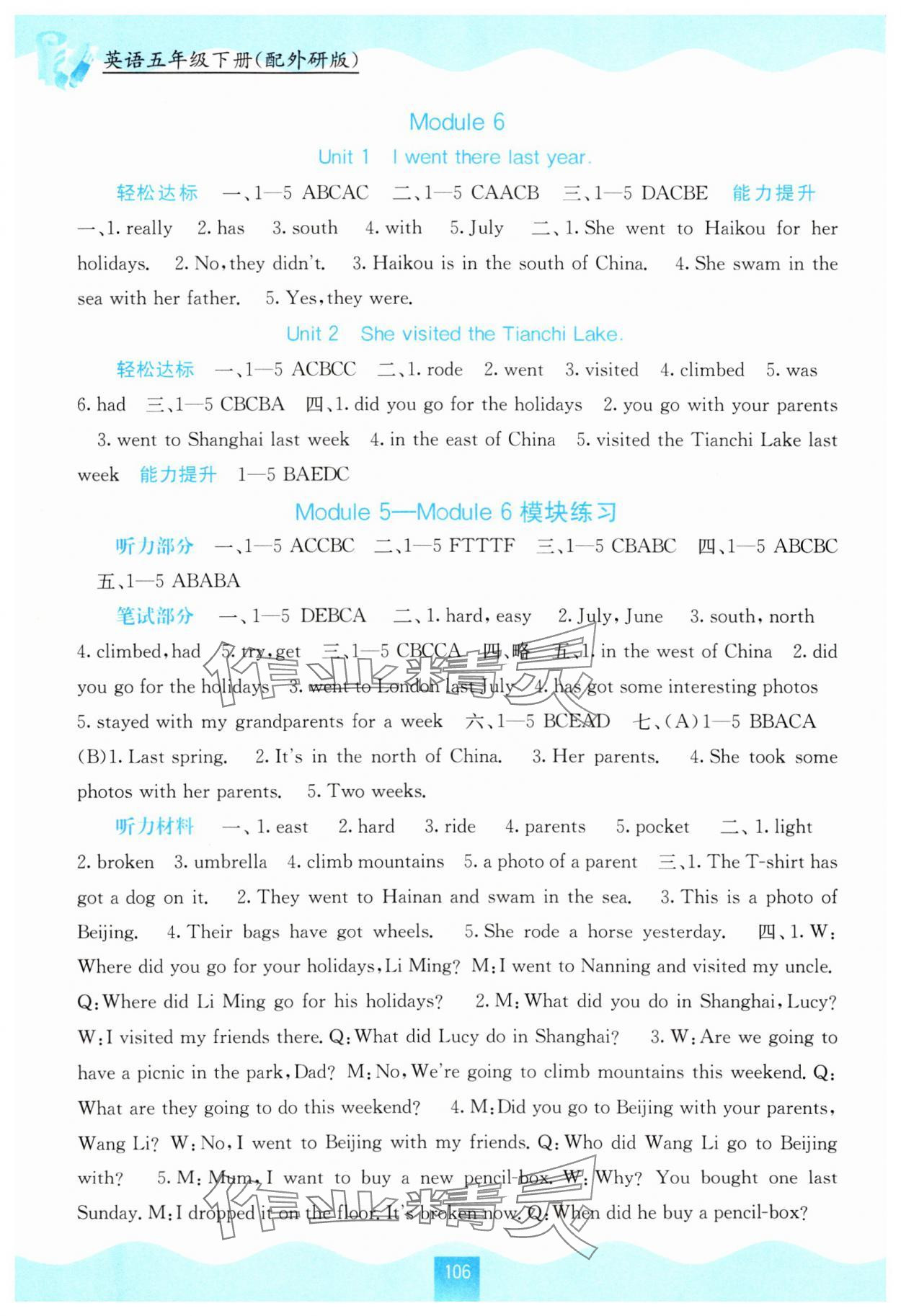 注:目前有些书本章节名称可能整理的还不是很完善,但都是按照顺序排列的,请同学们按照顺序仔细查找。练习册 2024年自主学习能力测评五年级英语下册外研版 答案主要是用来给同学们做完题方便对答案用的,请勿直接抄袭。