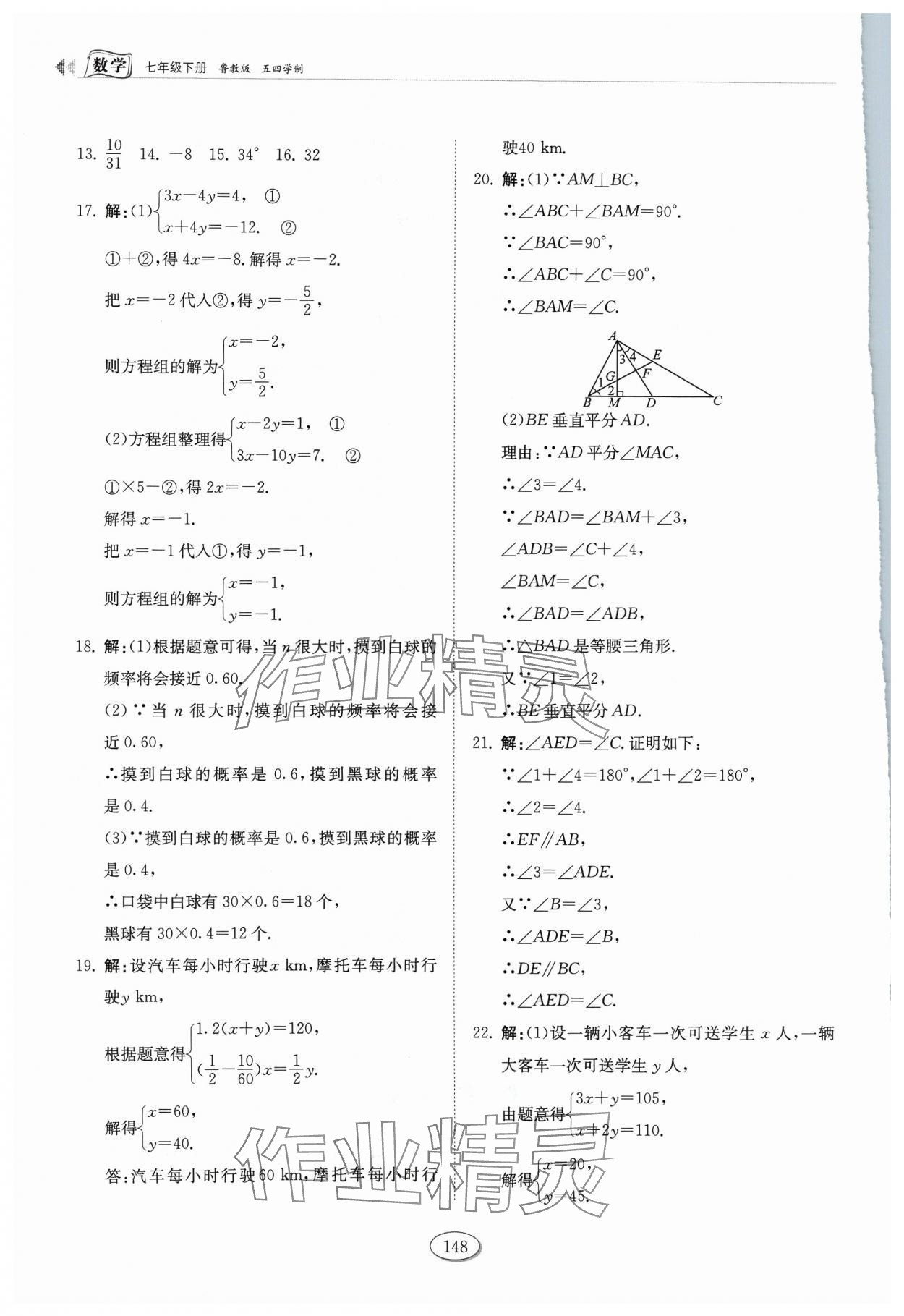 注:目前有些书本章节名称可能整理的还不是很完善,但都是按照顺序排列的,请同学们按照顺序仔细查找。练习册 2024年初中同步练习册七年级数学下册鲁教版54制山东科学技术出版社 答案主要是用来给同学们做完题方便对答案用的,请勿直接抄袭。