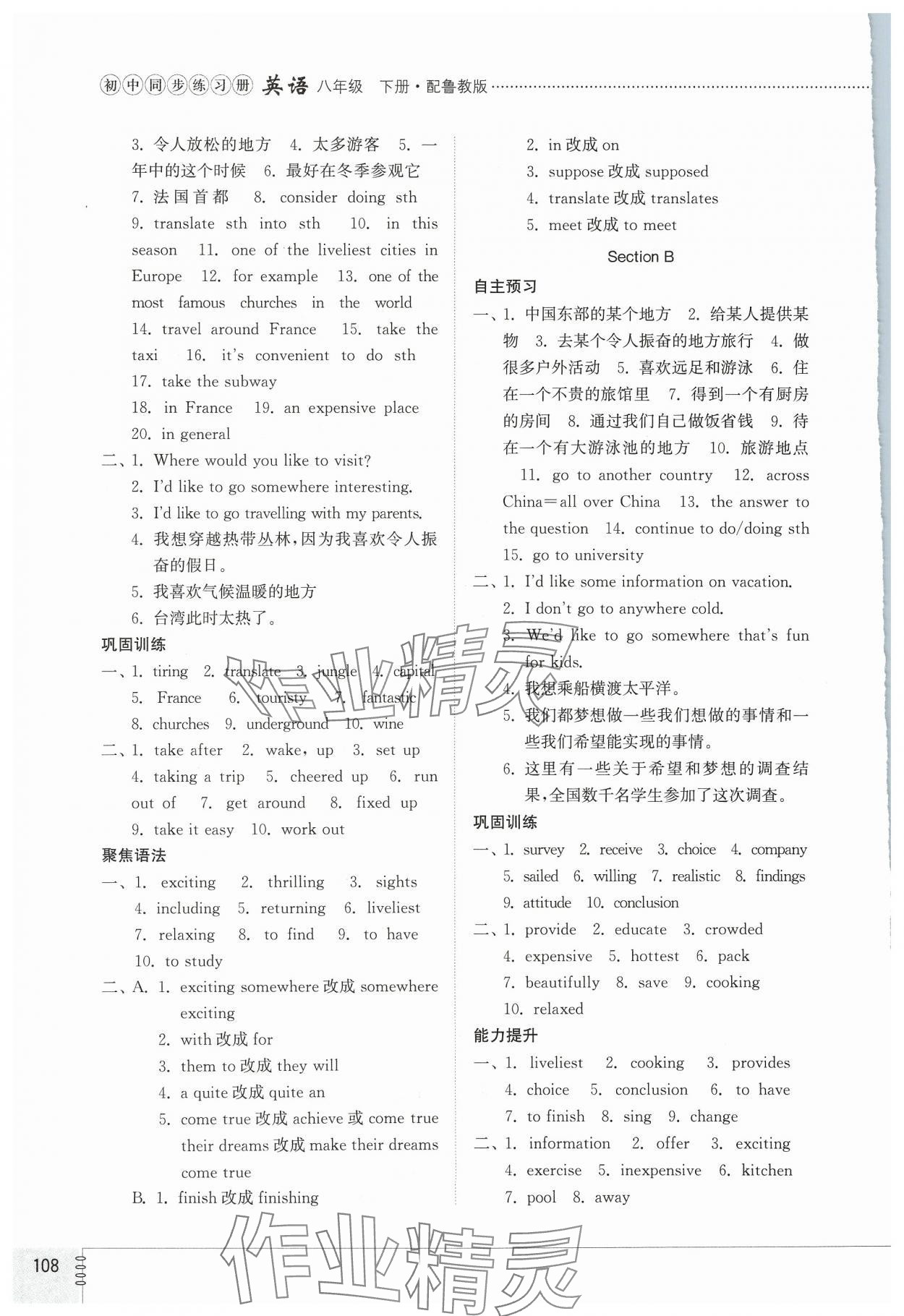 注:目前有些书本章节名称可能整理的还不是很完善,但都是按照顺序排列的,请同学们按照顺序仔细查找。练习册 2024年同步练习册山东教育出版社八年级英语下册鲁教版54制 答案主要是用来给同学们做完题方便对答案用的,请勿直接抄袭。