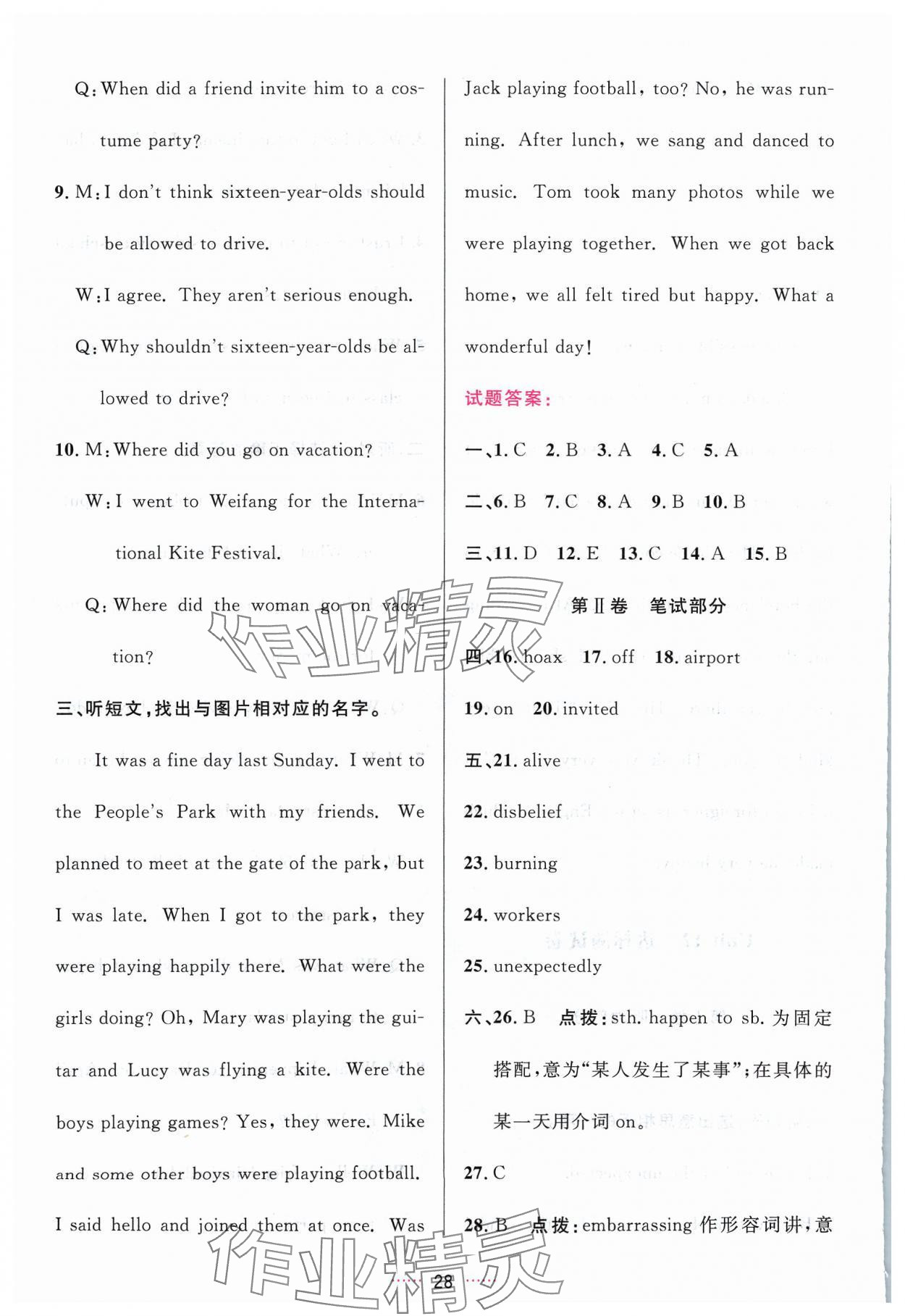 注:目前有些书本章节名称可能整理的还不是很完善,但都是按照顺序排列的,请同学们按照顺序仔细查找。练习册 2024年三维数字课堂九年级英语下册人教版 答案主要是用来给同学们做完题方便对答案用的,请勿直接抄袭。