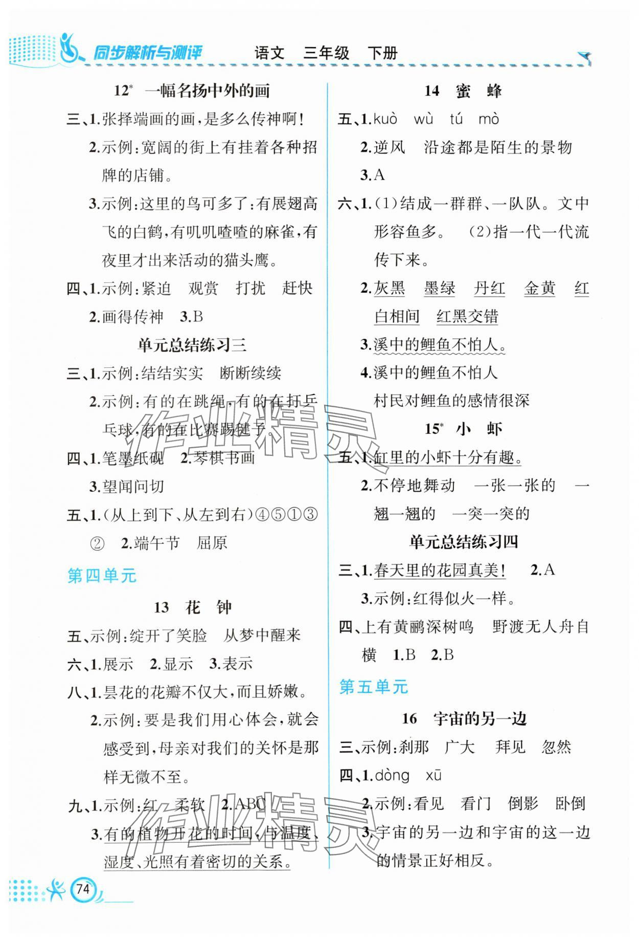 注:目前有些书本章节名称可能整理的还不是很完善,但都是按照顺序排列的,请同学们按照顺序仔细查找。练习册 2024年人教金学典同步解析与测评三年级语文下册人教版福建专版 答案主要是用来给同学们做完题方便对答案用的,请勿直接抄袭。