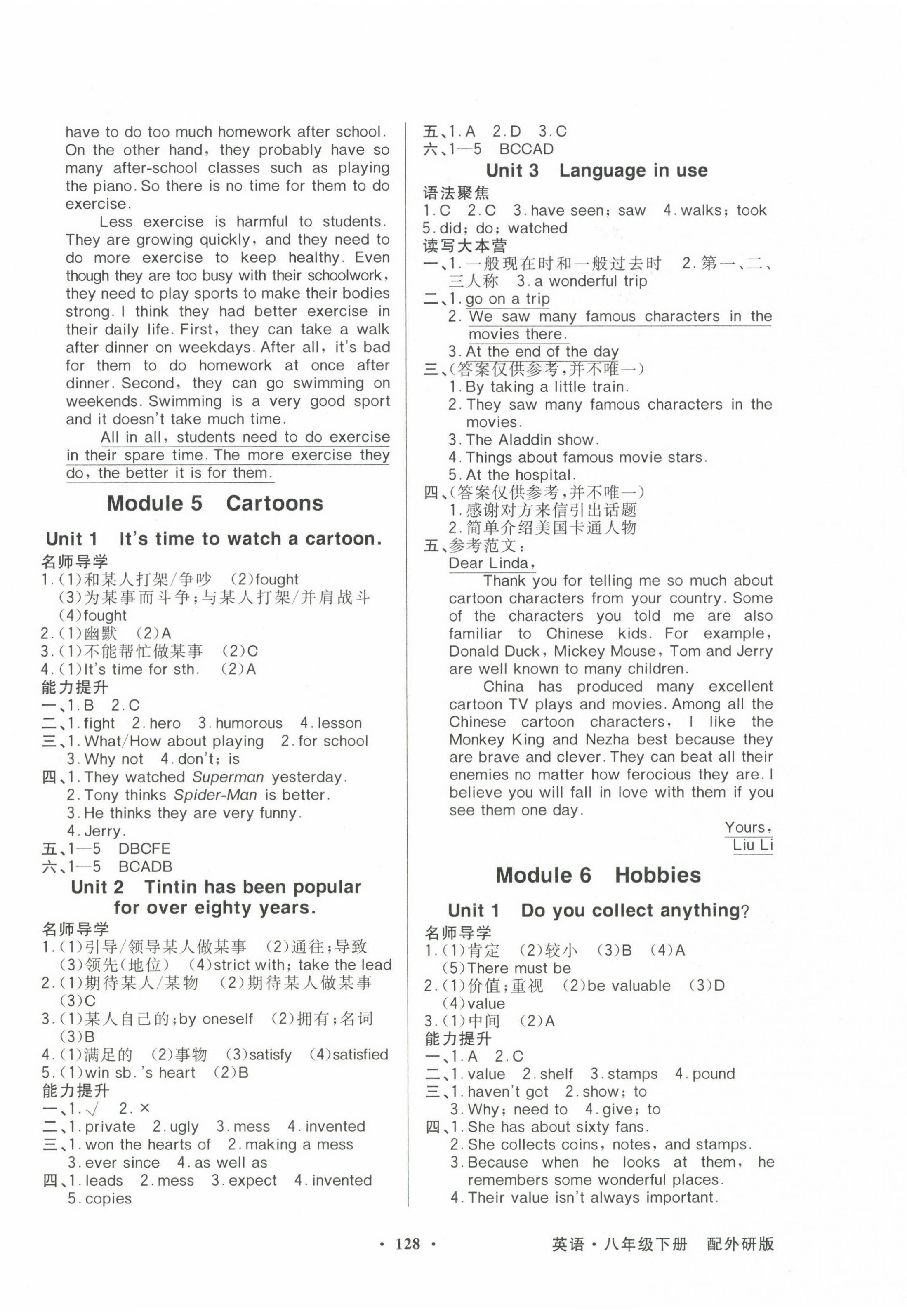 注:目前有些书本章节名称可能整理的还不是很完善,但都是按照顺序排列的,请同学们按照顺序仔细查找。练习册 2024年同步导学与优化训练八年级英语下册外研版 答案主要是用来给同学们做完题方便对答案用的,请勿直接抄袭。