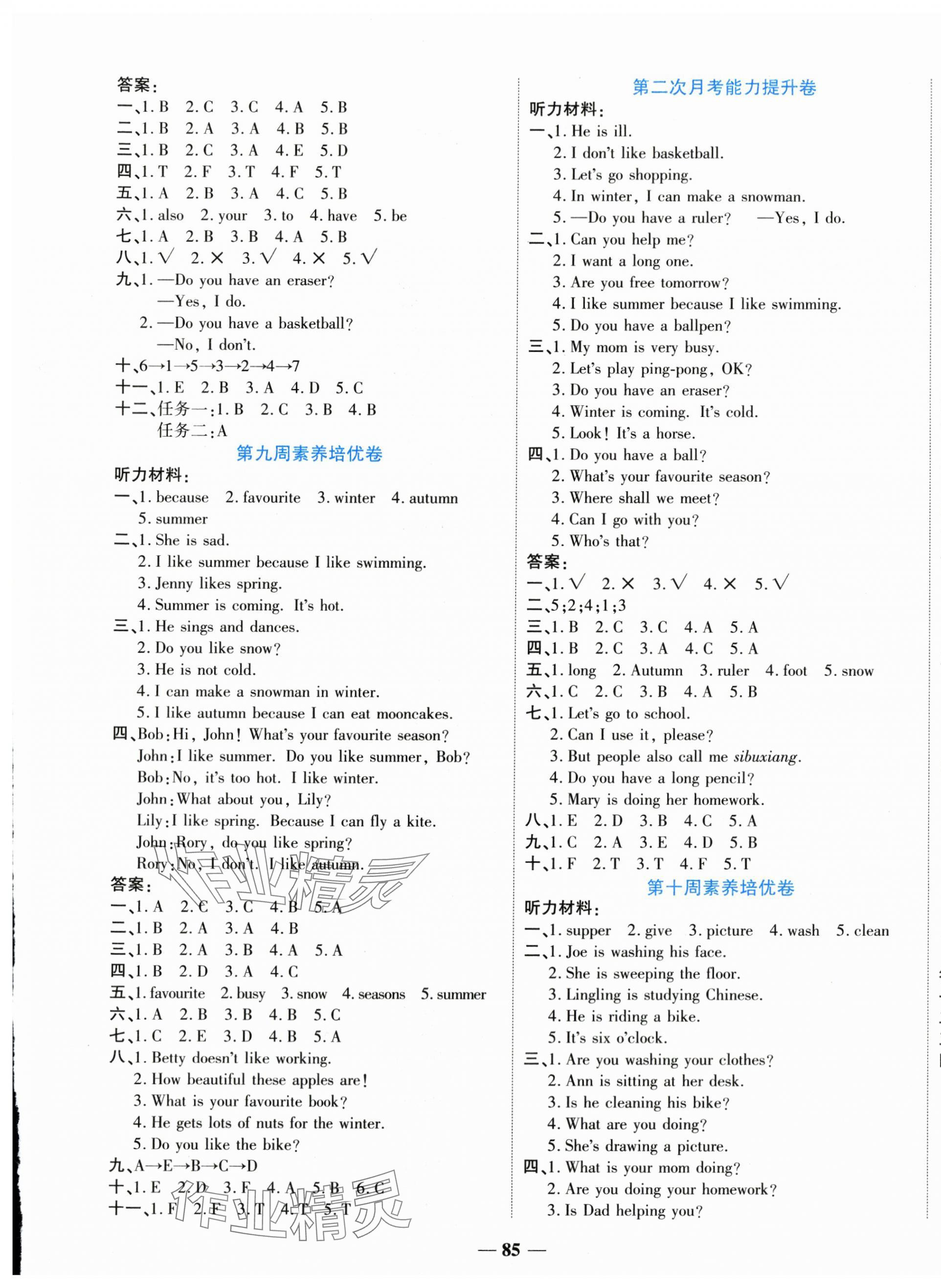 注:目前有些书本章节名称可能整理的还不是很完善,但都是按照顺序排列的,请同学们按照顺序仔细查找。练习册 2024年金优教辅全能练考卷四年级英语下册科普版 答案主要是用来给同学们做完题方便对答案用的,请勿直接抄袭。