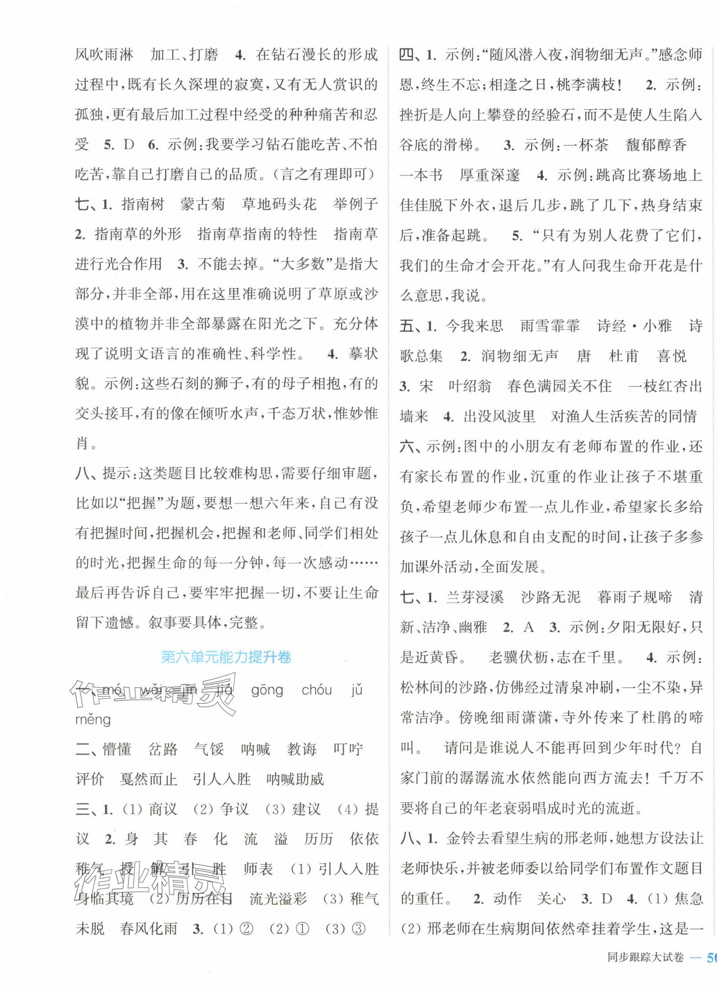 注:目前有些书本章节名称可能整理的还不是很完善,但都是按照顺序排列的,请同学们按照顺序仔细查找。练习册 2024年复习金卷同步跟踪大试卷六年级语文下册人教版提优版 答案主要是用来给同学们做完题方便对答案用的,请勿直接抄袭。
