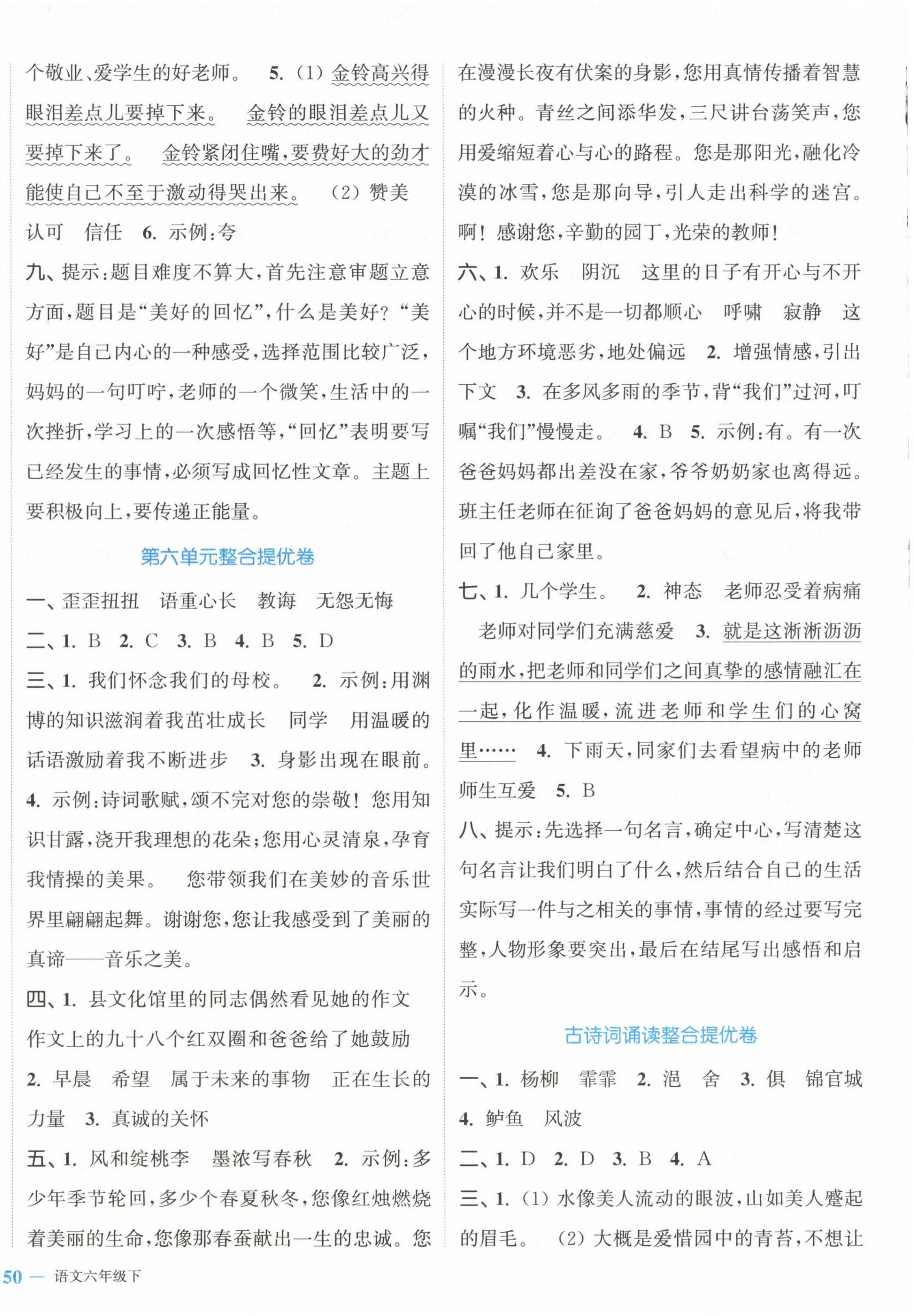 2024年复习金卷同步跟踪大试卷六年级语文下册人教版提优版