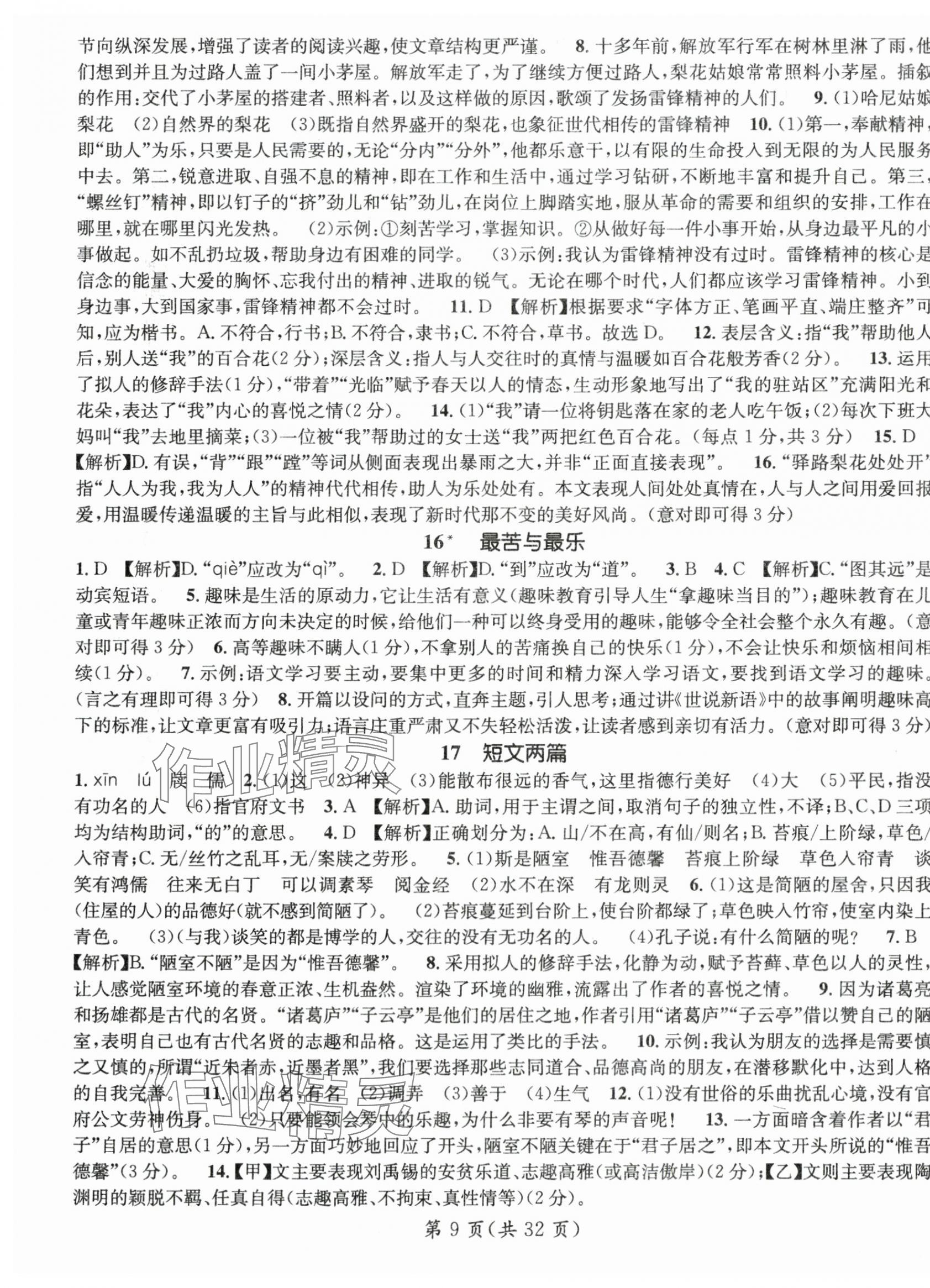 注:目前有些书本章节名称可能整理的还不是很完善,但都是按照顺序排列的,请同学们按照顺序仔细查找。练习册 2024年名师测控七年级语文下册人教版云南专版 答案主要是用来给同学们做完题方便对答案用的,请勿直接抄袭。