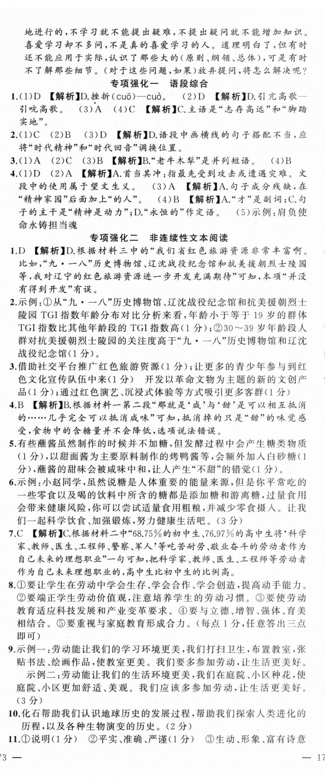 注:目前有些书本章节名称可能整理的还不是很完善,但都是按照顺序排列的,请同学们按照顺序仔细查找。练习册 2024年四清导航八年级语文下册人教版辽宁专版 答案主要是用来给同学们做完题方便对答案用的,请勿直接抄袭。