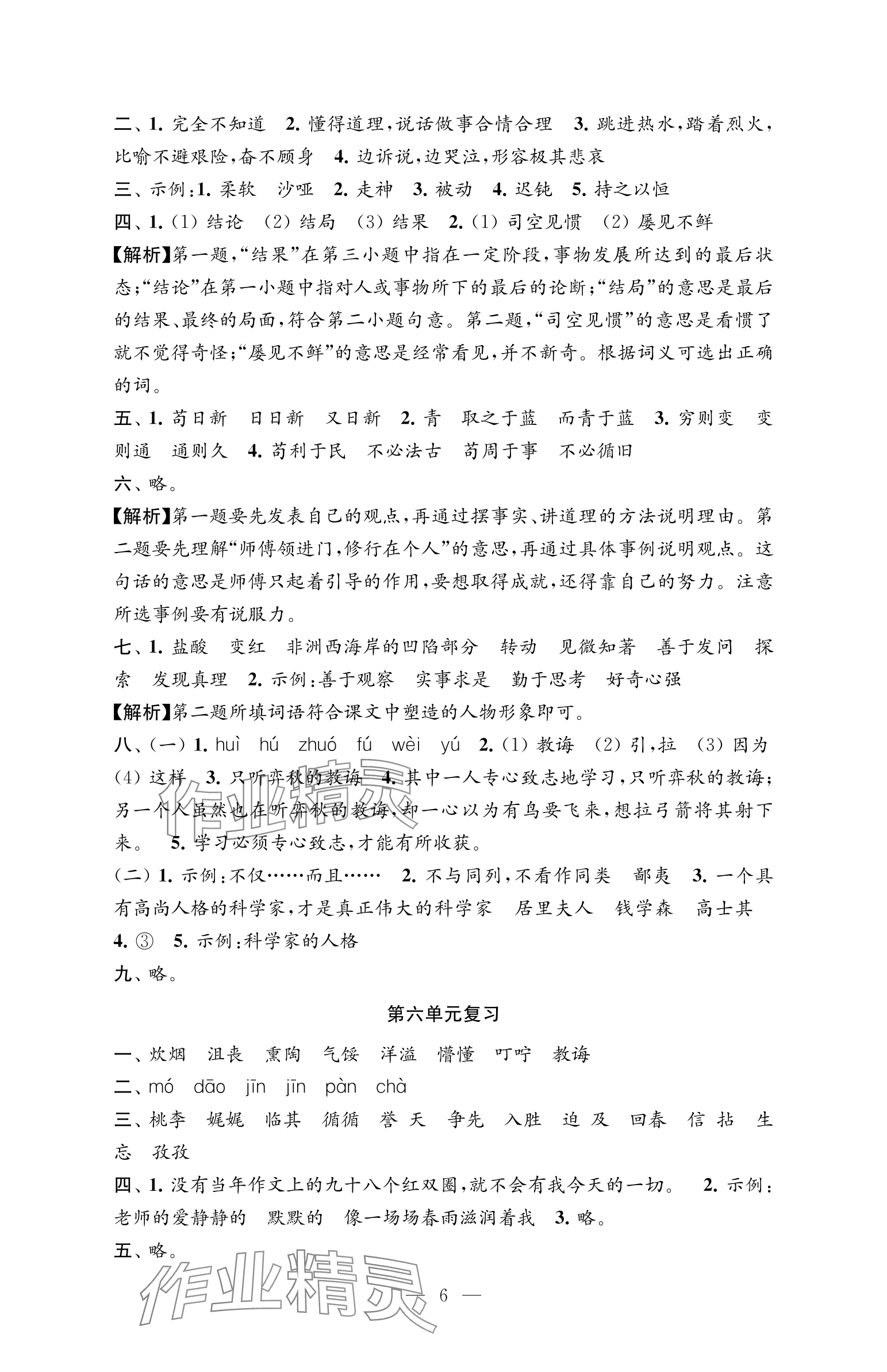 注:目前有些书本章节名称可能整理的还不是很完善,但都是按照顺序排列的,请同学们按照顺序仔细查找。练习册 2024年练习与测试检测卷六年级语文下册人教版 答案主要是用来给同学们做完题方便对答案用的,请勿直接抄袭。