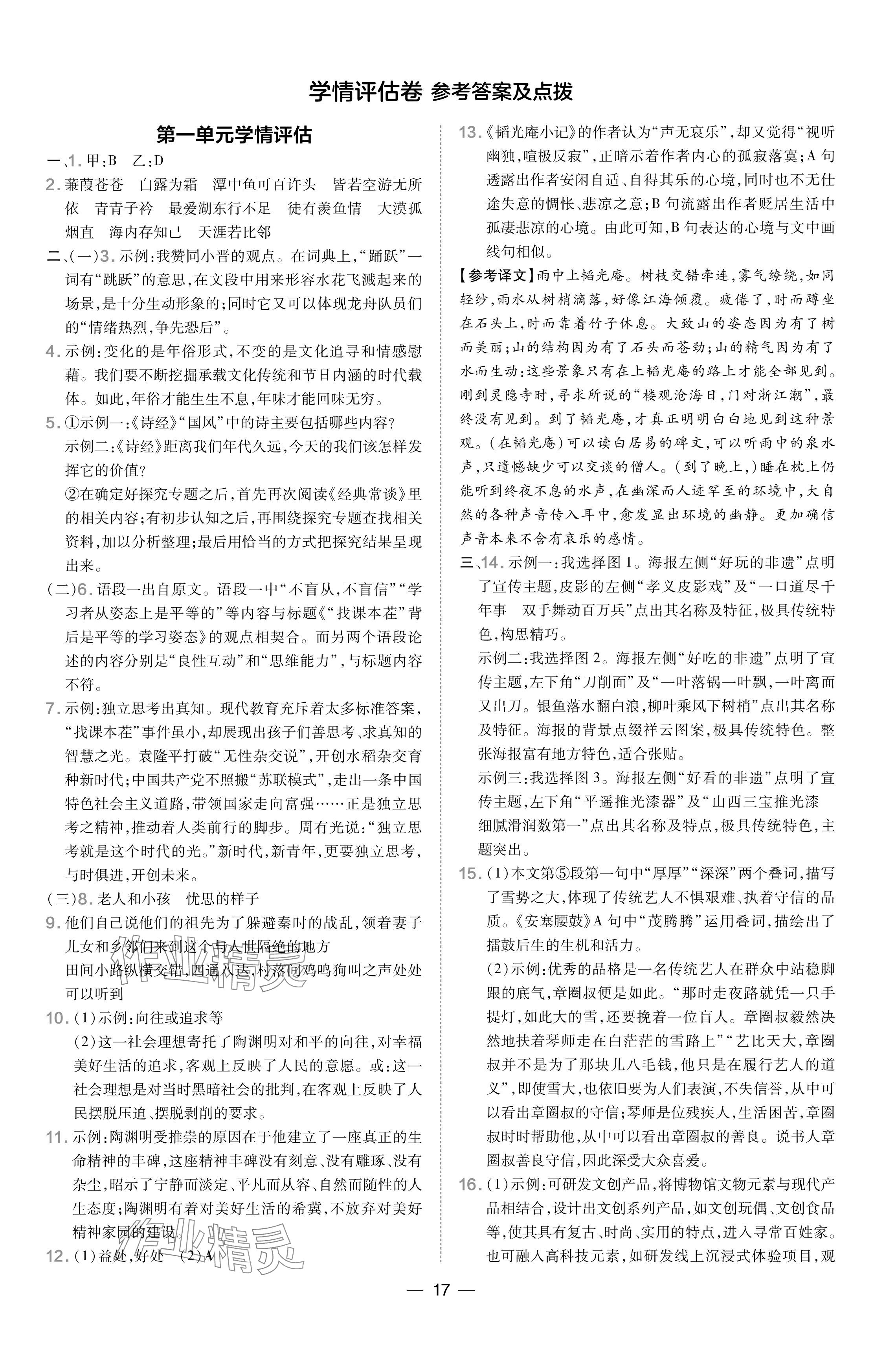 注:目前有些书本章节名称可能整理的还不是很完善,但都是按照顺序排列的,请同学们按照顺序仔细查找。练习册 2024年点拨训练八年级语文下册人教版山西专版 答案主要是用来给同学们做完题方便对答案用的,请勿直接抄袭。