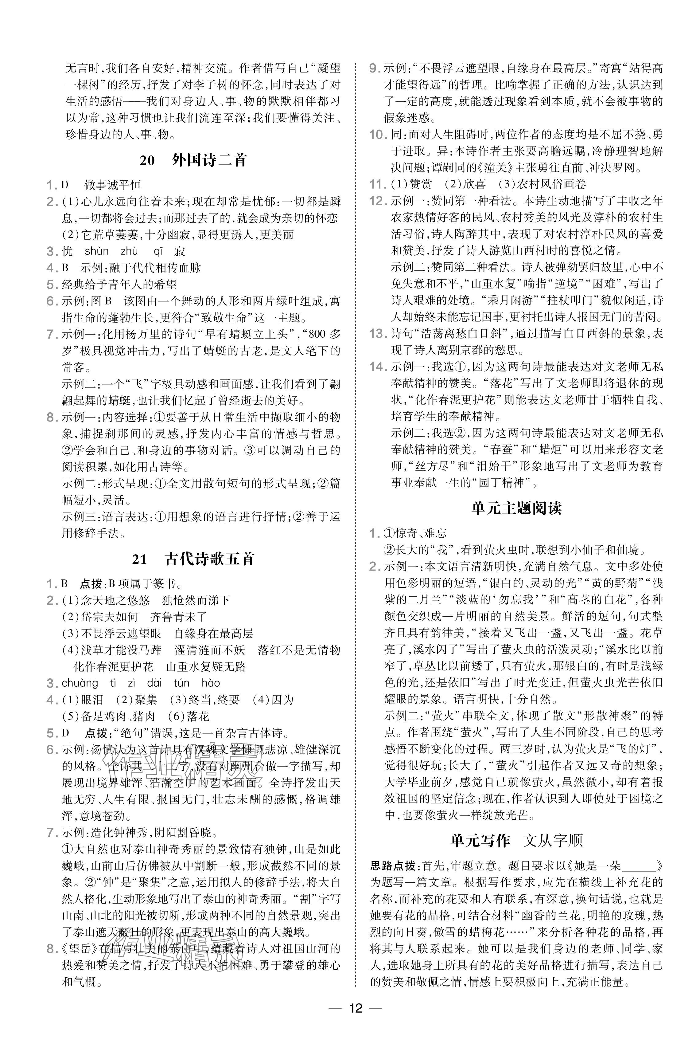 注:目前有些书本章节名称可能整理的还不是很完善,但都是按照顺序排列的,请同学们按照顺序仔细查找。练习册 2024年点拨训练七年级语文下册人教版山西专版 答案主要是用来给同学们做完题方便对答案用的,请勿直接抄袭。
