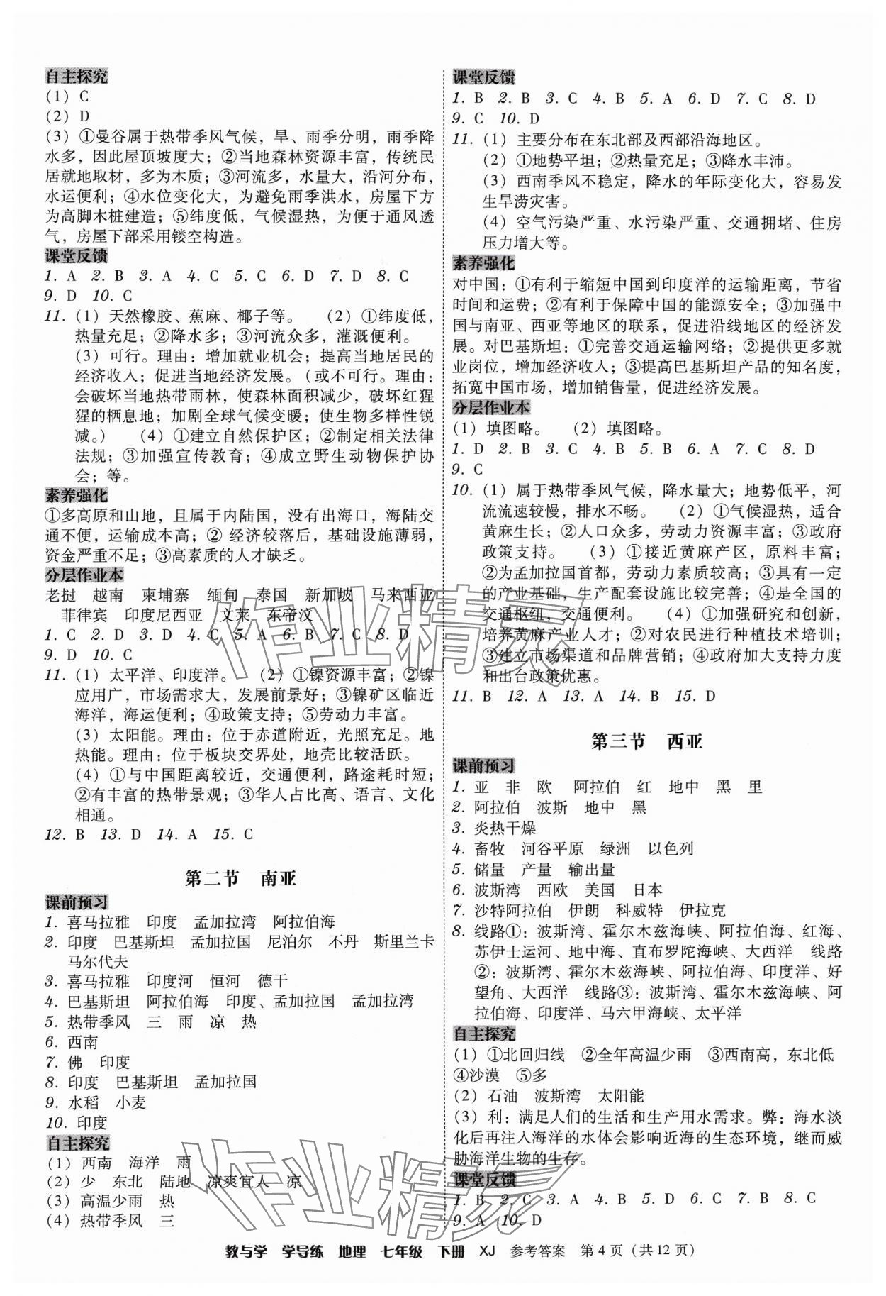 注:目前有些书本章节名称可能整理的还不是很完善,但都是按照顺序排列的,请同学们按照顺序仔细查找。练习册 2024年教与学学导练七年级地理下册湘教版 答案主要是用来给同学们做完题方便对答案用的,请勿直接抄袭。