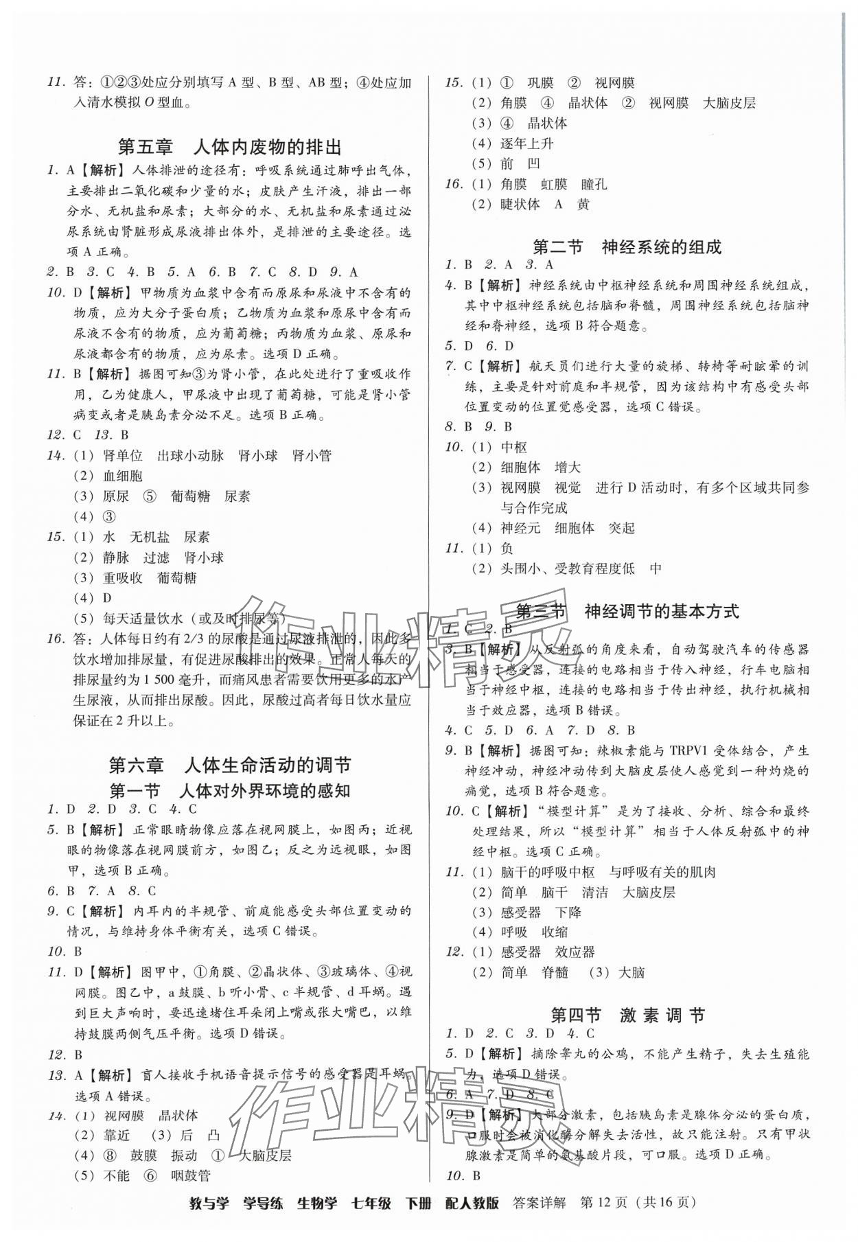 注:目前有些书本章节名称可能整理的还不是很完善,但都是按照顺序排列的,请同学们按照顺序仔细查找。练习册 2024年教与学学导练七年级生物下册人教版 答案主要是用来给同学们做完题方便对答案用的,请勿直接抄袭。
