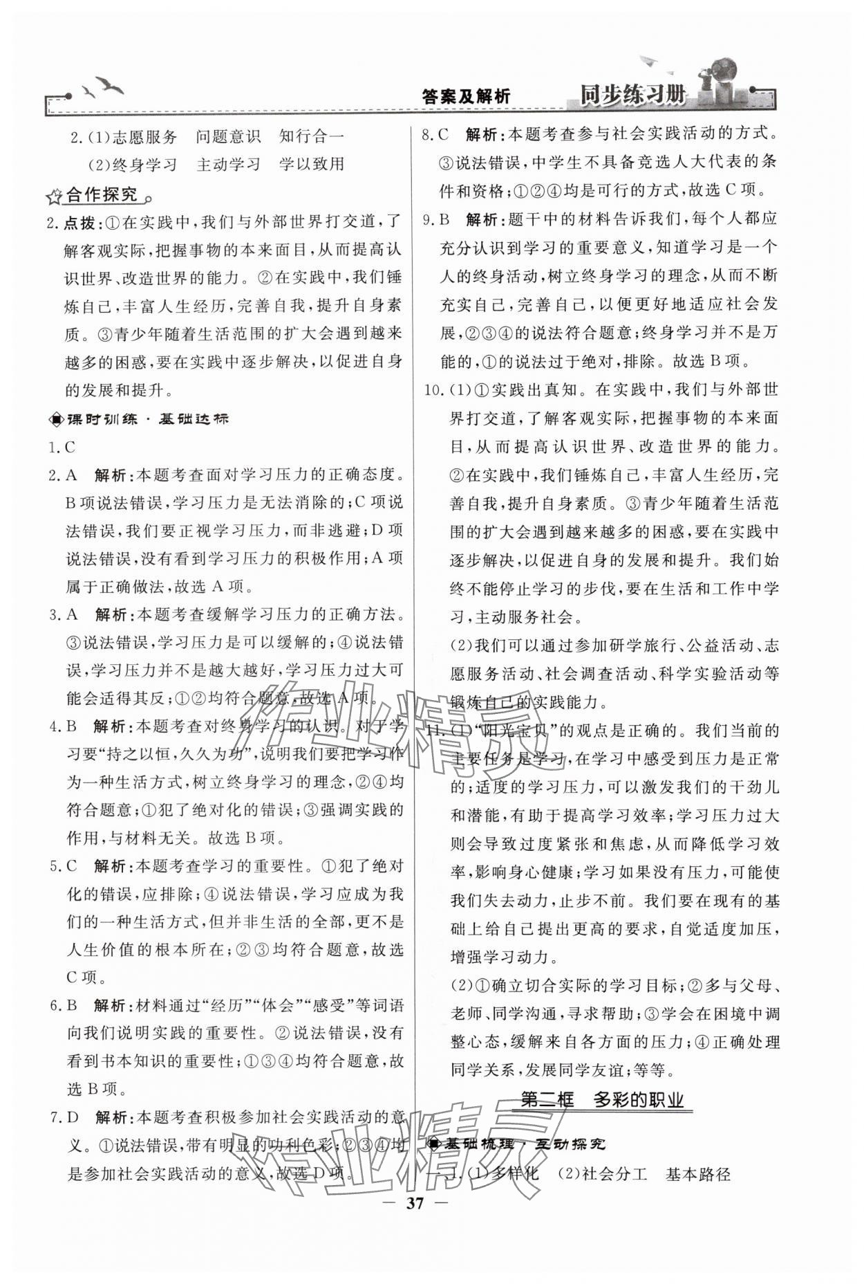 注:目前有些书本章节名称可能整理的还不是很完善,但都是按照顺序排列的,请同学们按照顺序仔细查找。练习册 2024年同步练习册人民教育出版社九年级道德与法治下册人教版江苏专版 答案主要是用来给同学们做完题方便对答案用的,请勿直接抄袭。