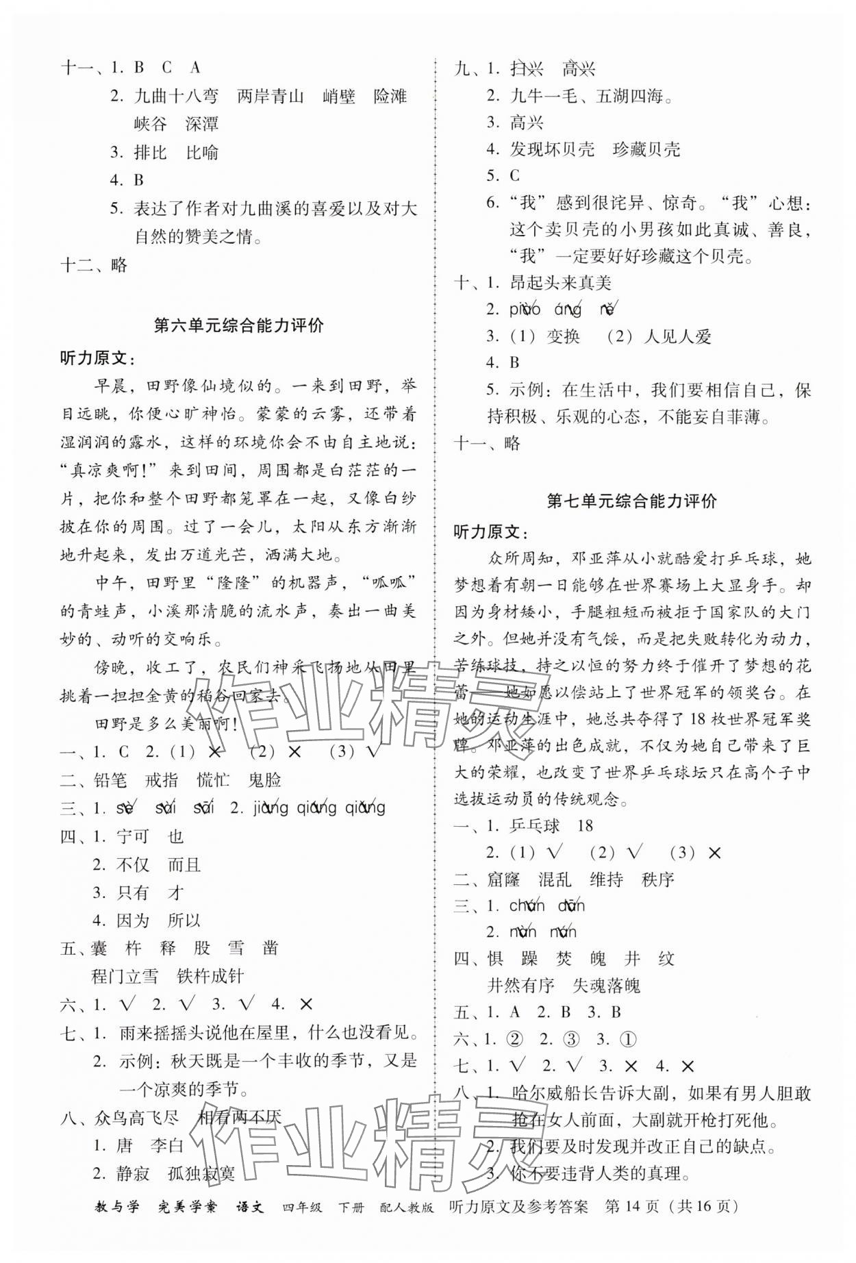 注:目前有些书本章节名称可能整理的还不是很完善,但都是按照顺序排列的,请同学们按照顺序仔细查找。练习册 2024年完美学案四年级语文下册人教版 答案主要是用来给同学们做完题方便对答案用的,请勿直接抄袭。