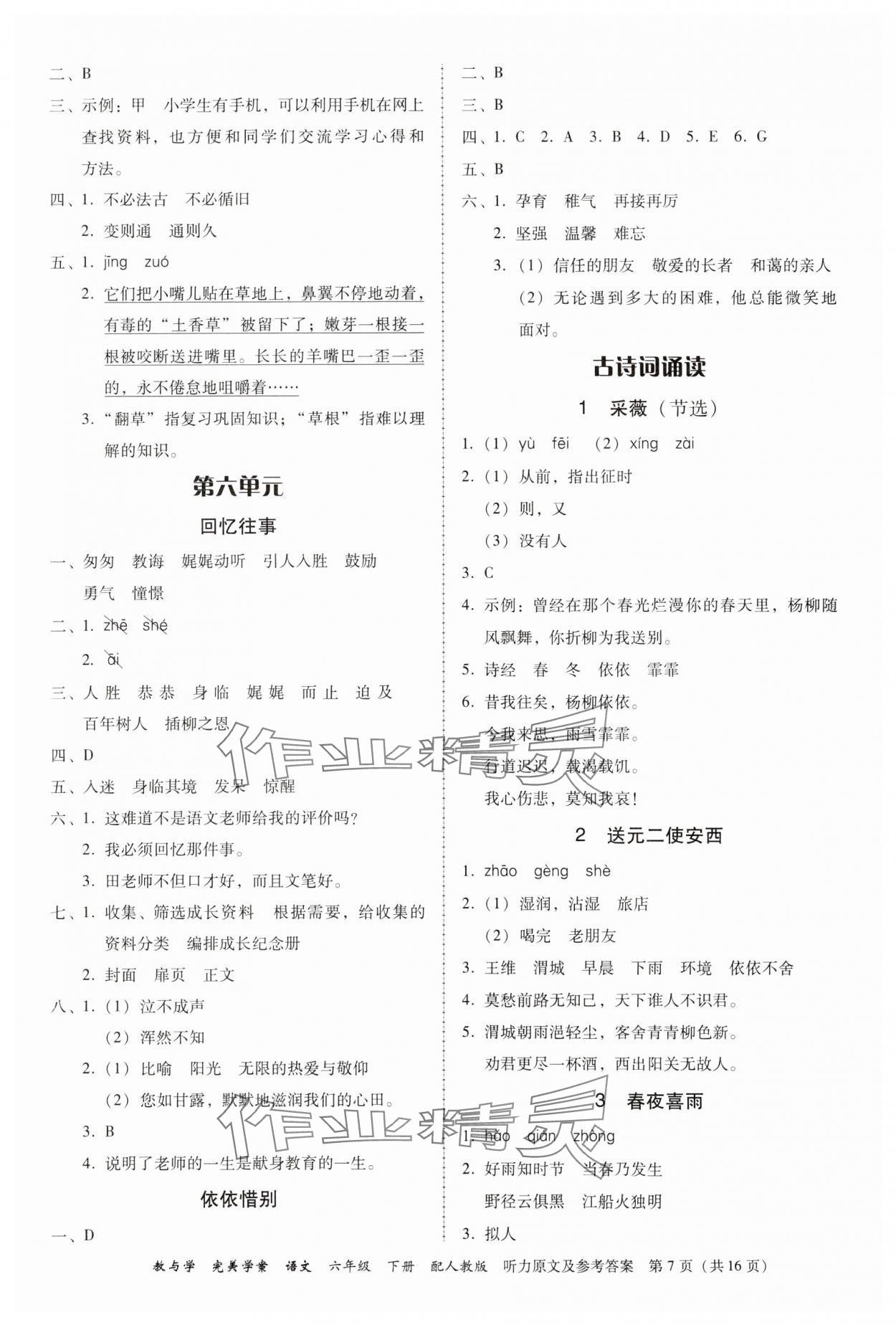 注:目前有些书本章节名称可能整理的还不是很完善,但都是按照顺序排列的,请同学们按照顺序仔细查找。练习册 2024年完美学案六年级语文下册人教版 答案主要是用来给同学们做完题方便对答案用的,请勿直接抄袭。