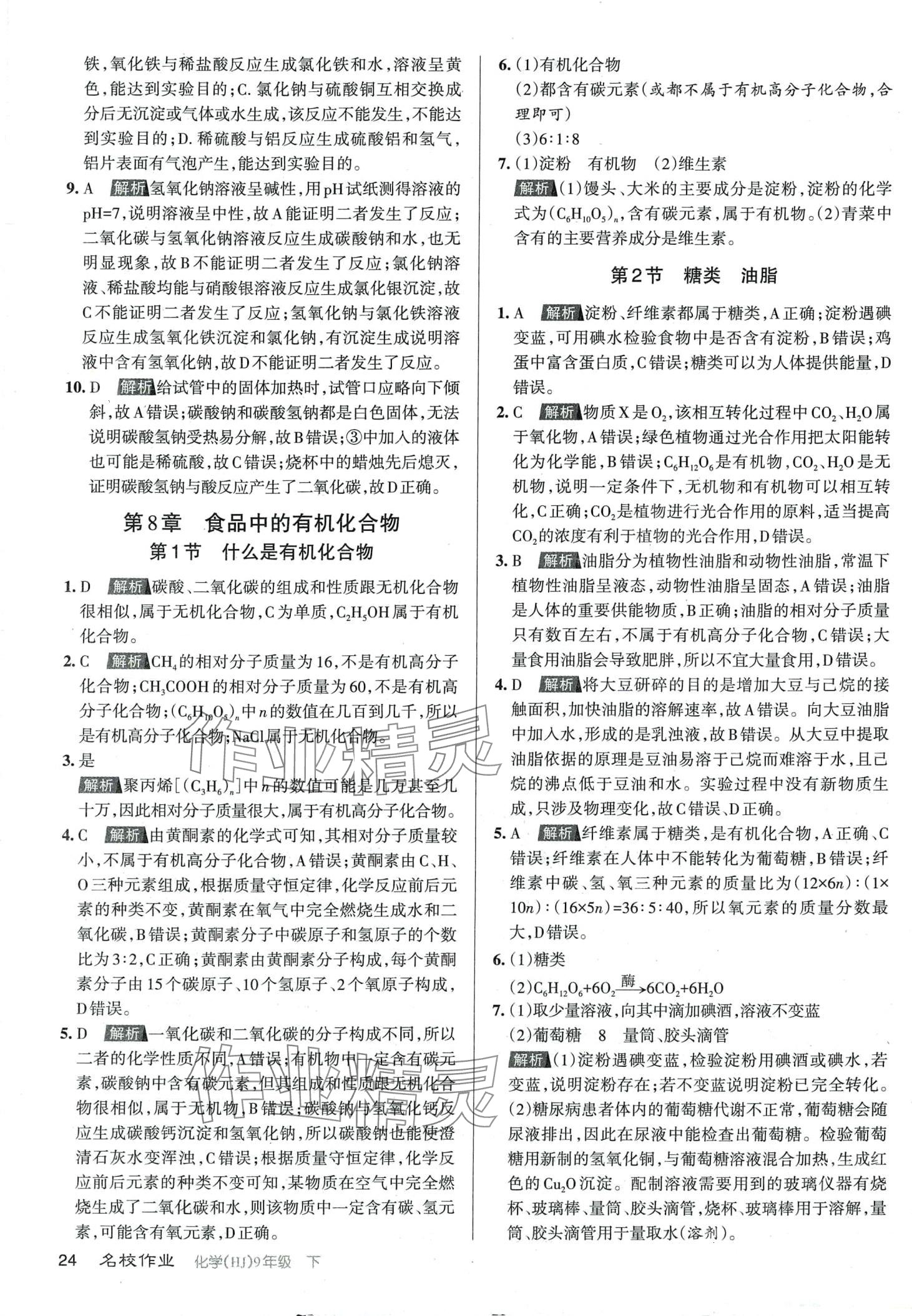 注:目前有些书本章节名称可能整理的还不是很完善,但都是按照顺序排列的,请同学们按照顺序仔细查找。练习册 2024年名校作业九年级化学下册沪教版山西专版 答案主要是用来给同学们做完题方便对答案用的,请勿直接抄袭。