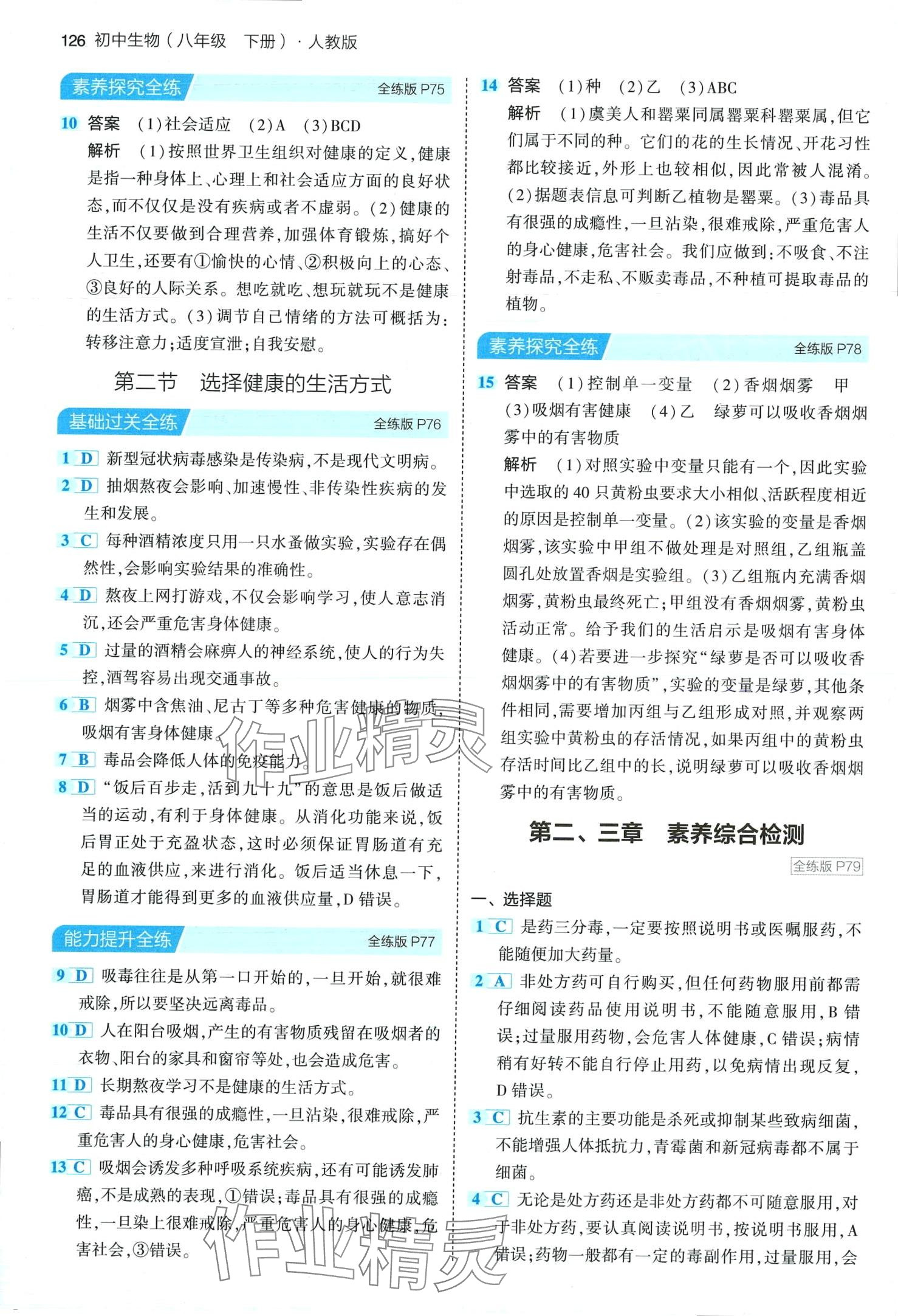 注:目前有些书本章节名称可能整理的还不是很完善,但都是按照顺序排列的,请同学们按照顺序仔细查找。练习册 2024年5年中考3年模拟八年级生物下册人教版 答案主要是用来给同学们做完题方便对答案用的,请勿直接抄袭。