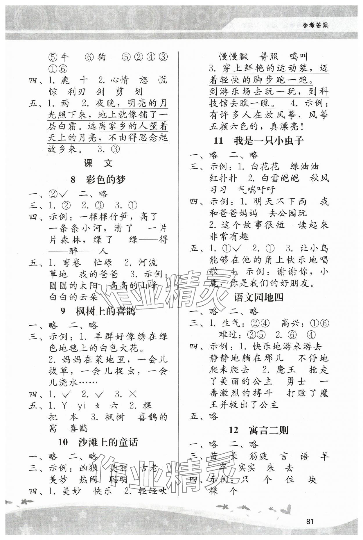 注:目前有些书本章节名称可能整理的还不是很完善,但都是按照顺序排列的,请同学们按照顺序仔细查找。练习册 2024年新课程学习辅导二年级语文下册人教版中山专版 答案主要是用来给同学们做完题方便对答案用的,请勿直接抄袭。
